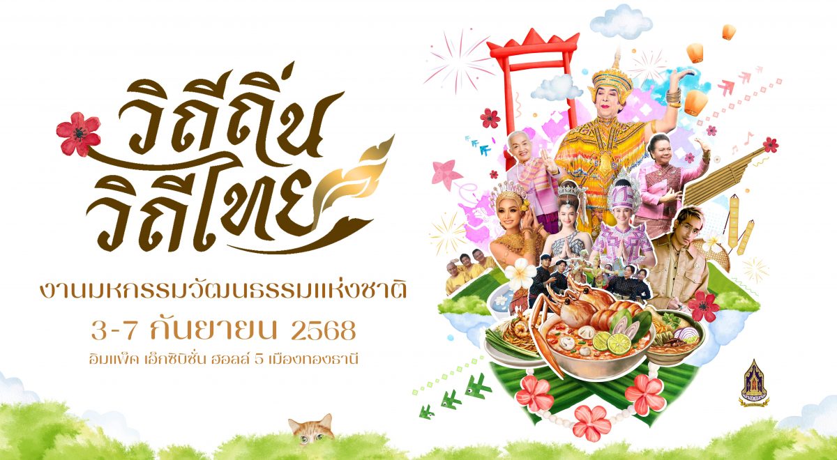 กระแสตอบรับถล่มทลายตั้งแต่วันแรก! กระทรวงวัฒนธรรม เปิดเวทีมหกรรมวัฒนธรรมแห่งชาติ “วิถีถิ่น วิถีไทย” ประจำปี 2568 อย่างยิ่งใหญ่ ณ อิมแพ็ค เอ็กซิบิชั่น ฮอลล์ 5 เมืองทองธานี ตั้งแต่วันที่ 3 – 7 กันยายน 2568 ภายใต้แนวคิด “ไทยดี” ที่สื่อสารวัฒนธรรมไทยในมิติร่วมสมัย เข้าถึงง่าย สนุก และเต็มไปด้วยคุณค่า พร้อมจัดแสดงศิลปวัฒนธรรมทั้ง 4 ภูมิภาคของไทยควบคู่กับโชว์บันเทิงระดับประเทศทุกวัน