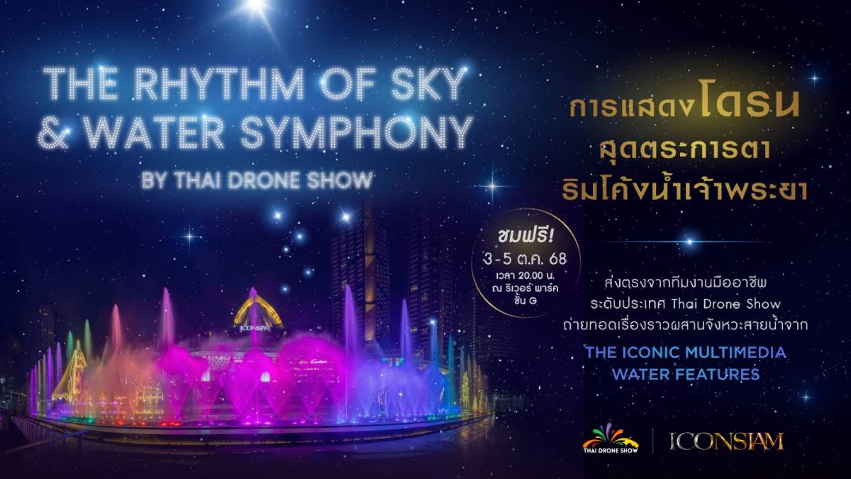 ห้ามพลาด! มาร่วมสัมผัสประสบการณ์สุดพิเศษกับการแสดงที่จะสะกดทุกสายตาและสร้างความประทับใจไม่รู้ลืม “THE RHYTHM OF THE SKY & WATER SYMPHONY By Thai Drone Show” วันที่ 3 – 5 ตุลาคม 2568 เวลา 20:00 น. ณ ริเวอร์ พาร์ค ไอคอนสยาม สอบถามรายละเอียดเพิ่มเติม โทร.1338 และ Facebook : ICONSIAM