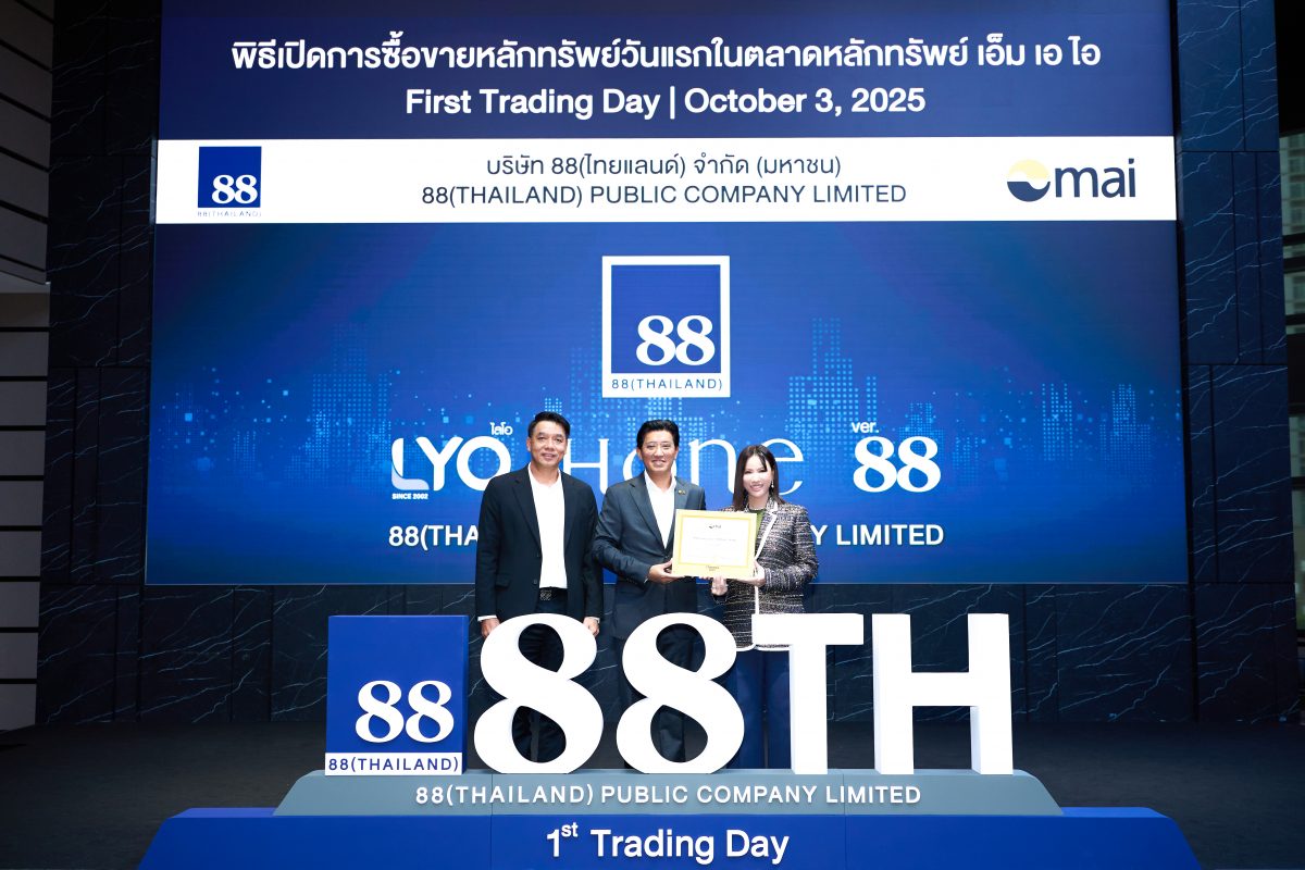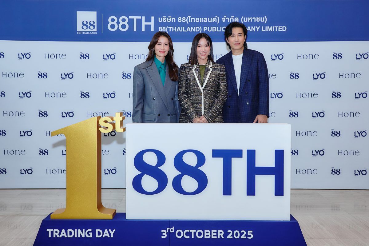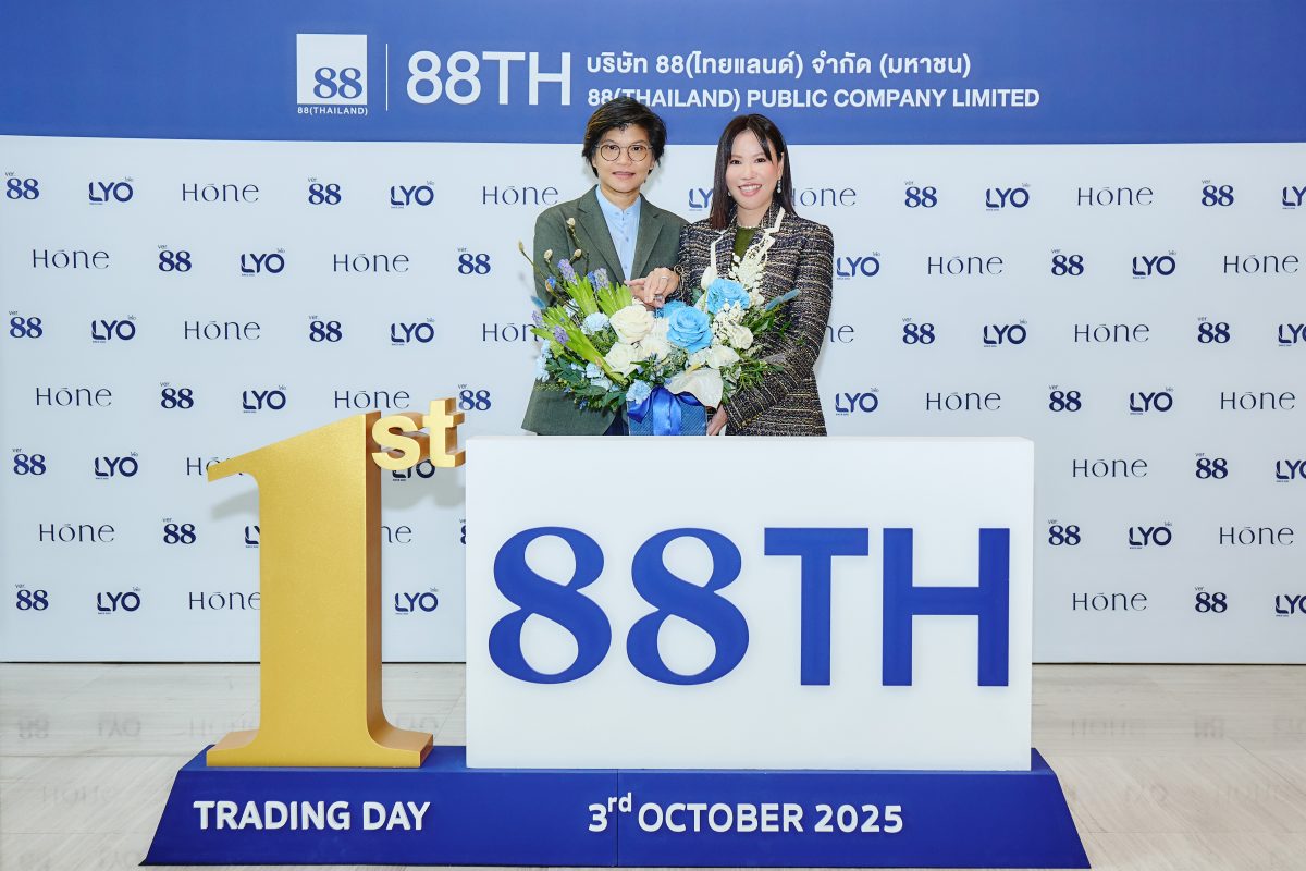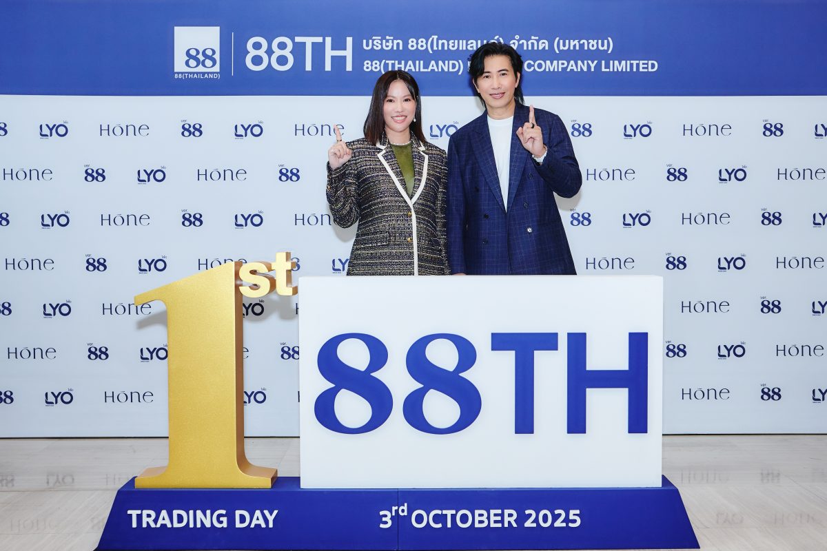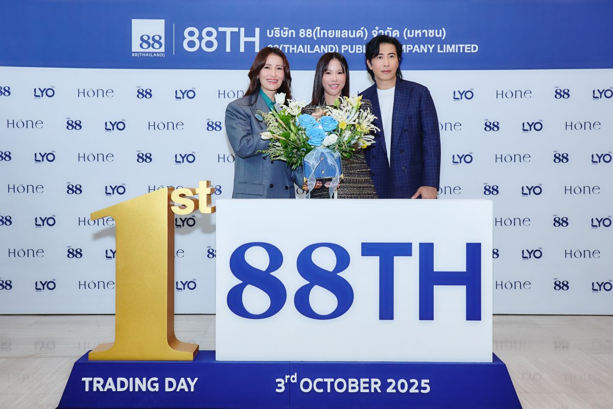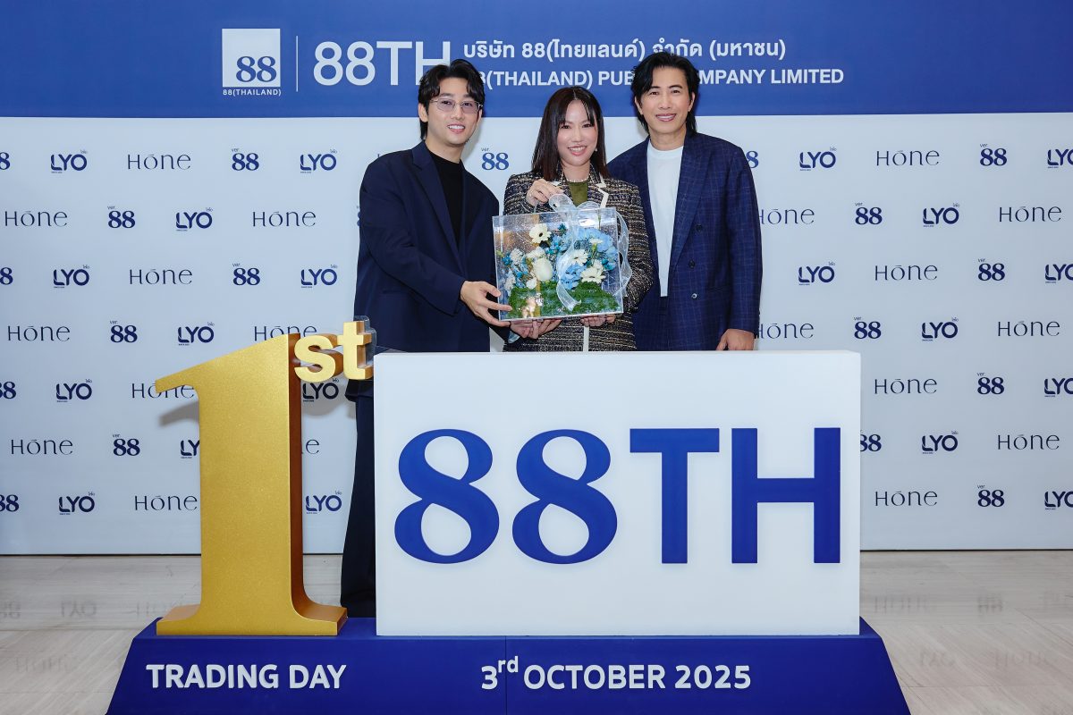 วันที่ 3 ตุลาคม 2568 ถือเป็นอีกหนึ่งวันประวัติศาสตร์ของ บริษัท 88(ไทยแลนด์) จำกัด (มหาชน) หรือ 88TH โดย นพรัตน์ มาลัยวงค์ ผู้ก่อตั้งและกรรมการบริษัท หลังจากประสบความสำเร็จกับผลิตภัณฑ์ดูแลเส้นผมและหนังศีรษะ “LYO” ที่ครองใจผู้บริโภคชาวไทยมากว่า 4 ปี วันนี้ได้ก้าวเข้าสู่การซื้อขายวันแรก (First Day Trade) ในตลาดหลักทรัพย์ mai อย่างเป็นทางการ ในโอกาสพิเศษนี้ “หนุ่ม-กรรชัย กำเนิดพลอย” พาร์ทเนอร์ธุรกิจของ LYO และผู้ประกาศข่าวชื่อดังจากรายการ เที่ยงวันทันเหตุการณ์ และ โหนกระแส เดินทางมาร่วมมอบดอกไม้และแสดงความยินดีกับ นพรัตน์ มาลัยวงค์ อย่างอบอุ่น พร้อมกันนี้ยังมีบุคคลสำคัญจากหลายวงการร่วมแสดงความยินดี อาทิ คุณพาขวัญ วงศ์พลทวี ประธานเจ้าหน้าที่ฝ่ายการตลาดและพันธมิตรธุรกิจ (CMPO) จาก Plan B Media คุณแอน ทองประสม พรีเซ็นเตอร์ “ไลโอ สูตรสมุนไพร” คุณปอนด์ ออนนิว อินฟลูเอนเซอร์ชื่อดัง