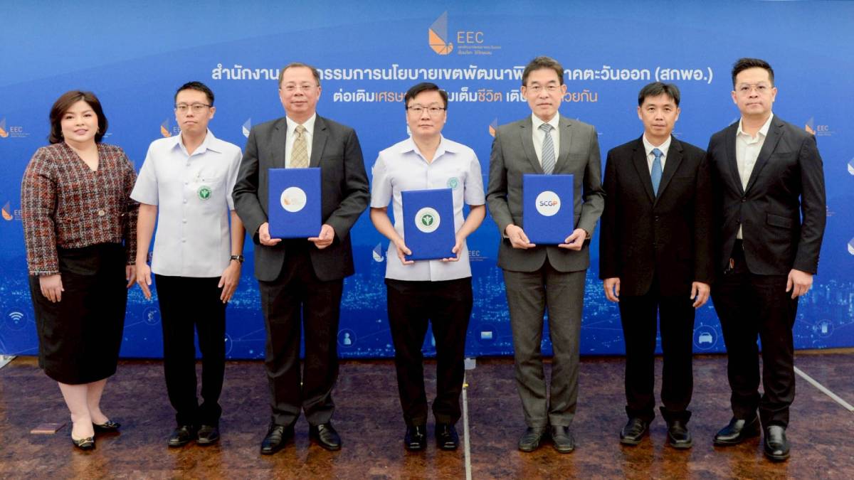 เมื่อเร็ว ๆนี้ ดร.จุฬา สุขมานพ เลขาธิการคณะกรรมการนโยบายเขตพัฒนาพิเศษภาคตะวันออก หรือ สกพอ. ได้ลงนามในบันทึกข้อตกลงความร่วมมือ (MOU) ด้านการบูรณาการความร่วมมือด้านสุขภาพในพื้นที่เขตพัฒนาพิเศษภาคตะวันออก (Eastern Economic Corridor : EEC) ร่วมกับ ดร.นพ.โสภณ เอี่ยมศิริถาวร ผู้ตรวจราชการกระทรวงสาธารณสุข เขตสุขภาพที่ 6 และ นายกรัณย์ เตชะเสน ประธานเจ้าหน้าที่ปฏิบัติการธุรกิจเวชภัณฑ์ทางการแพทย์ บริษัท เอสซีจี แพคเกจจิ้ง จำกัด (มหาชน) ณ ห้องประชุมคอนเฟอเรนส์สำนักงาน สกพอ.