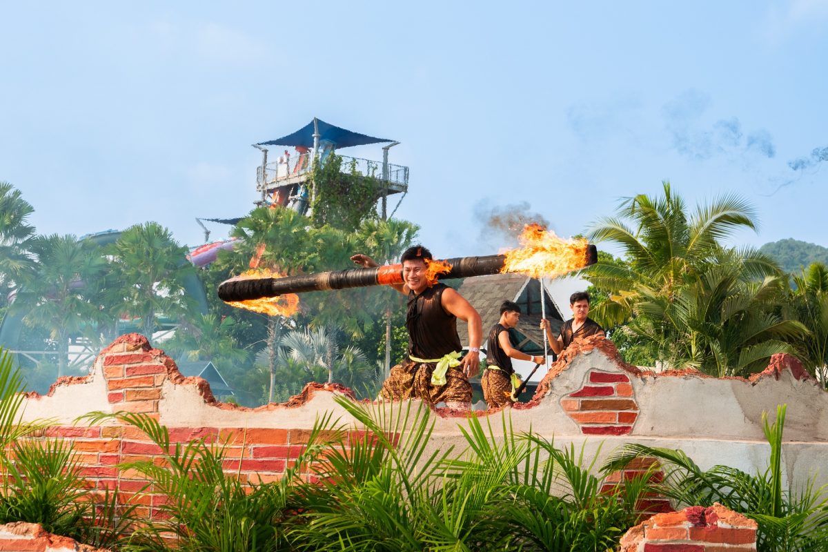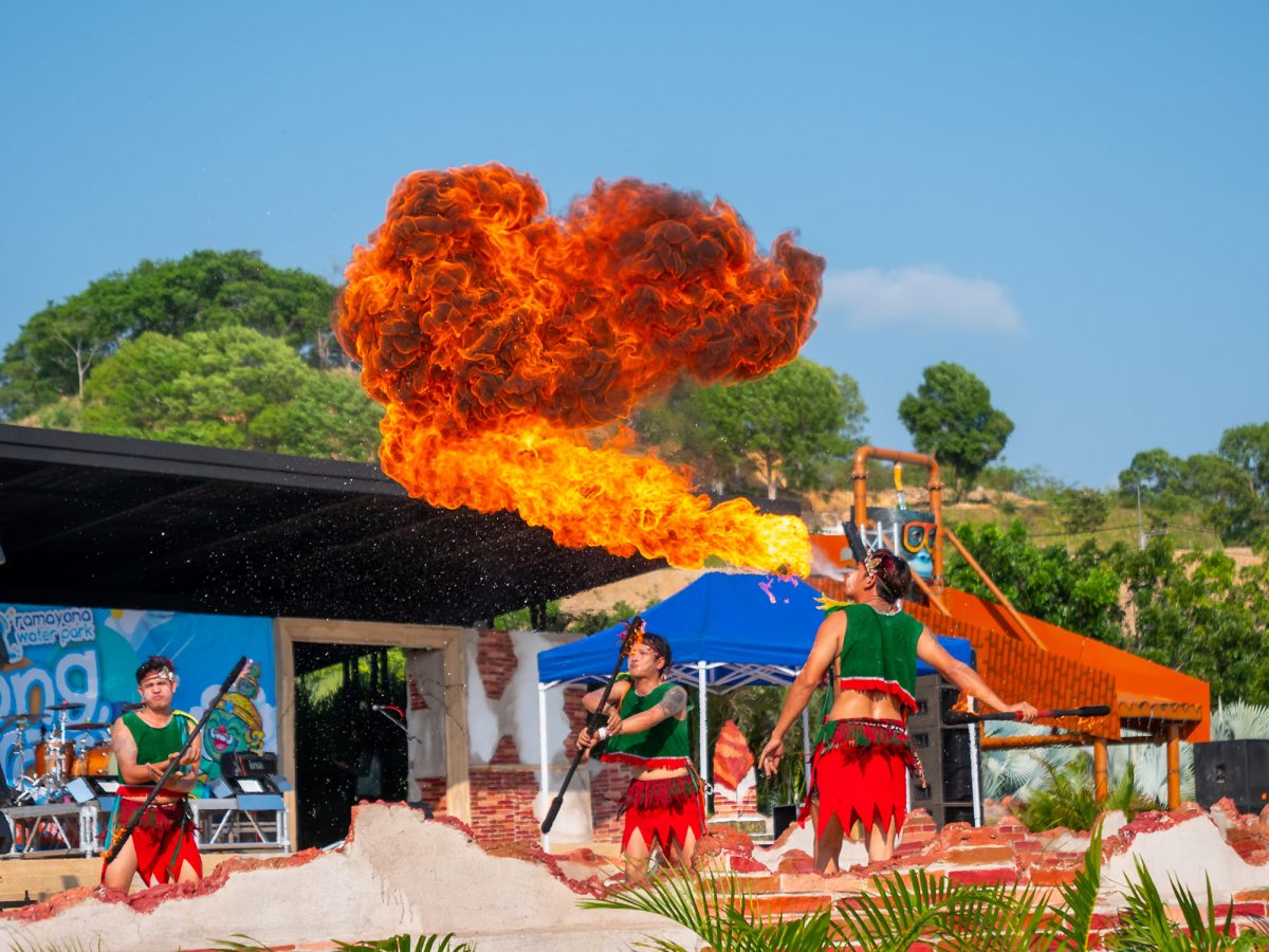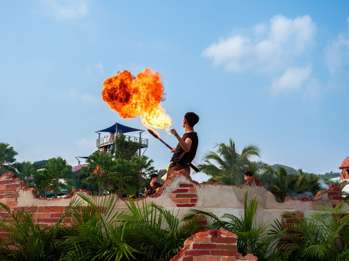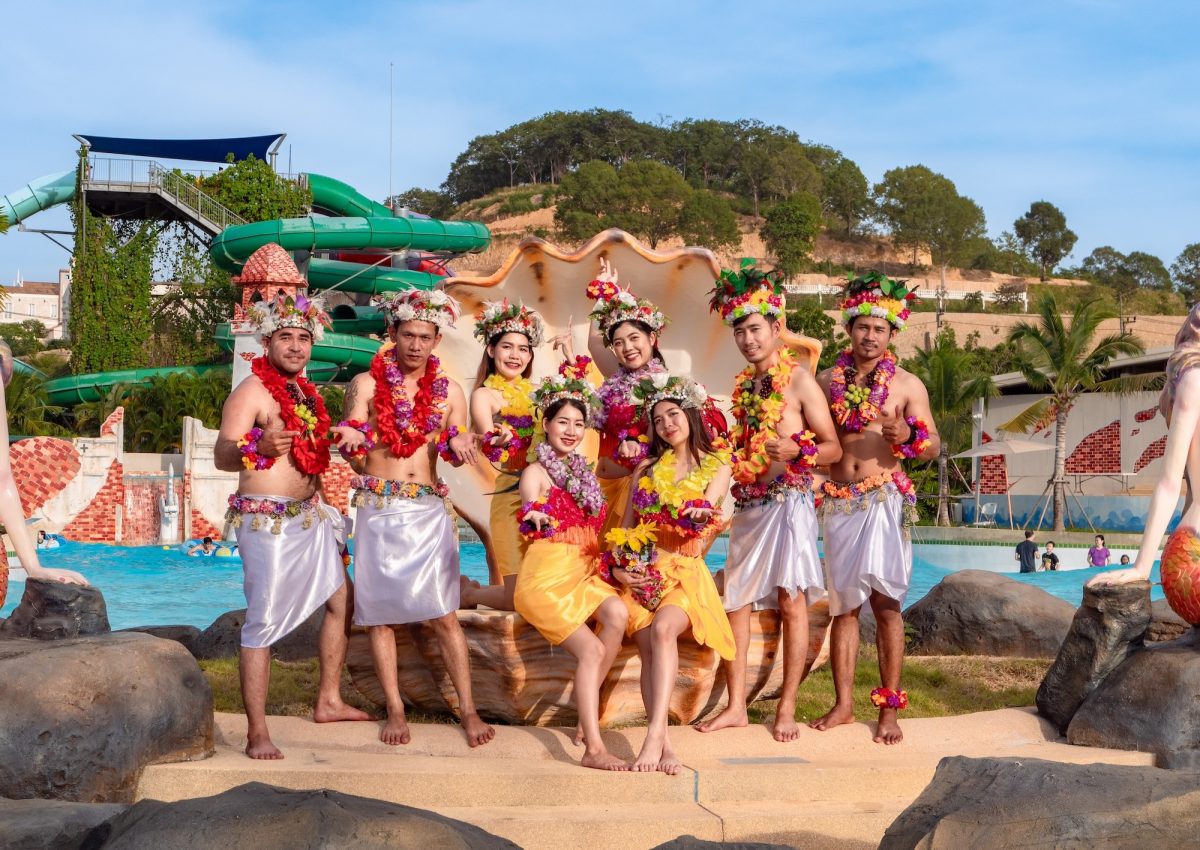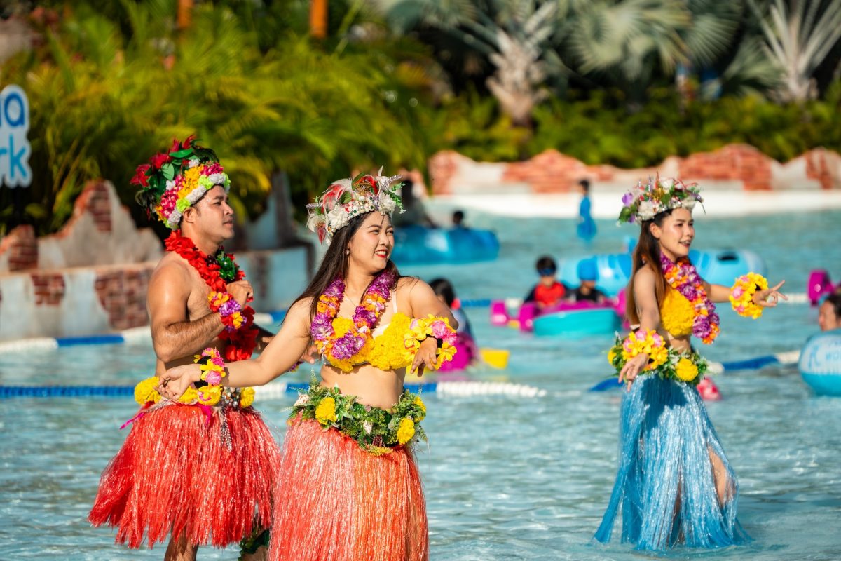 ● เพลิดเพลินไปกับการแสดงเต้นลิมโบ และระบำฮาวายพ่นไฟสุดตระการตา ที่ Double Wave Pool