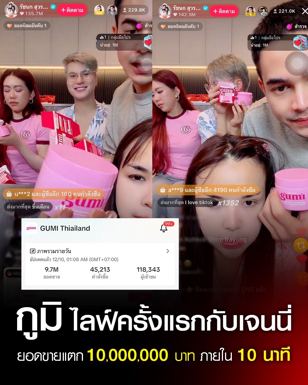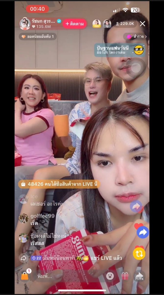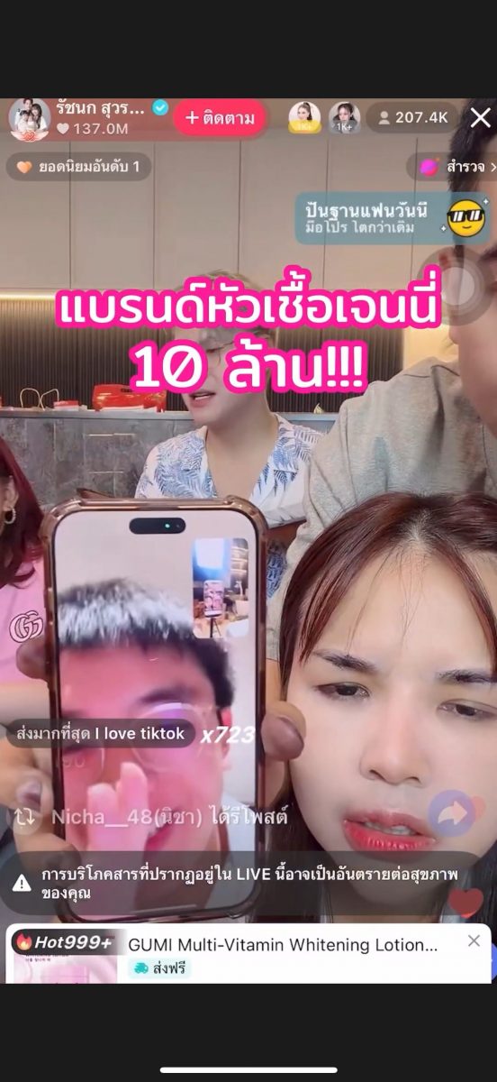 ดูอย่างดีลสายฟ้าแลบกับผลิตภัณฑ์ แบรนด์ กูมิ (Gumi) ที่เพิ่งมาไลฟ์กับ เจนนี่ ครั้งแรกแค่ 10 นาที ก็สามารถปิดยอดขายไปได้หลายสิบล้าน ลองคิดดูสิว่าค่าคอมฯ จากดีลระดับนี้ที่เข้ากระเป๋าเธอนั้นมหาศาลแค่ไหน ซึ่ง เจนนี่ ได้หมดถ้าสดชื่น ฟาดความคอม จากแบรนด์ กูมิ (Gumi) ไป 6 ล้านบาท จากยอดขาย