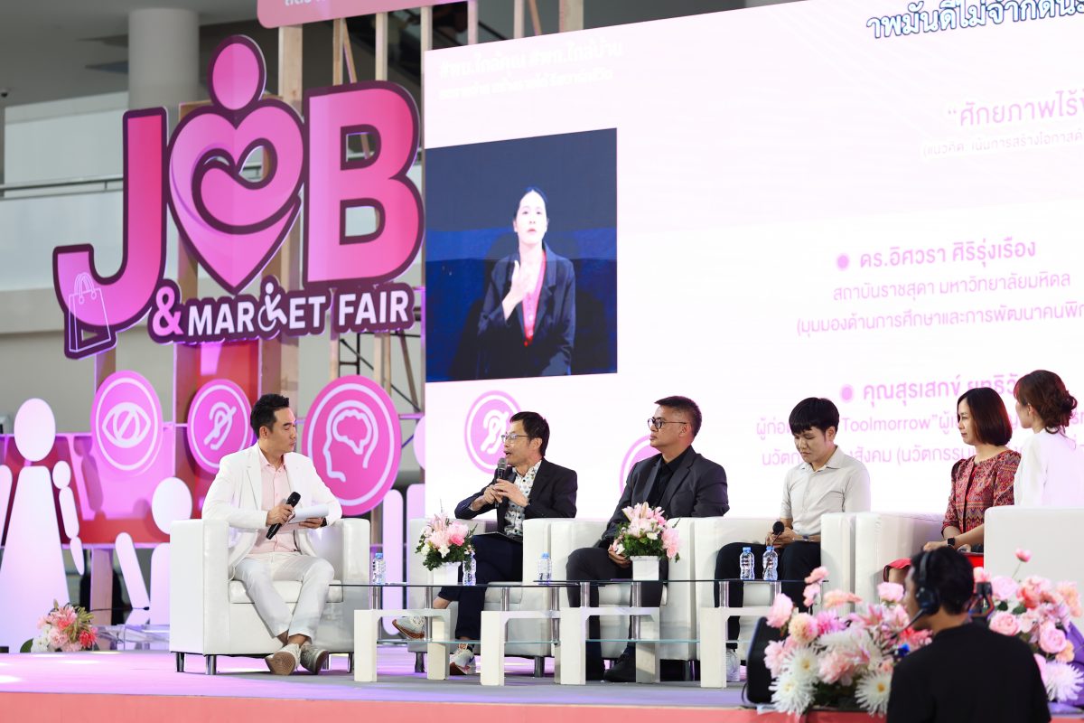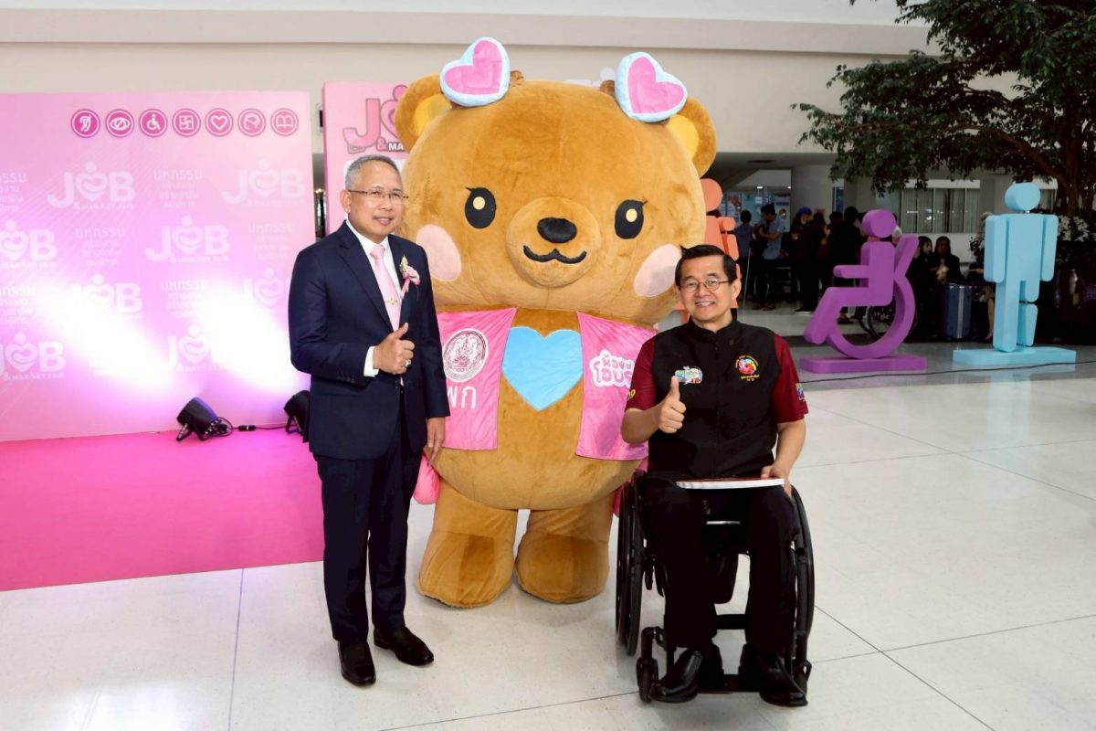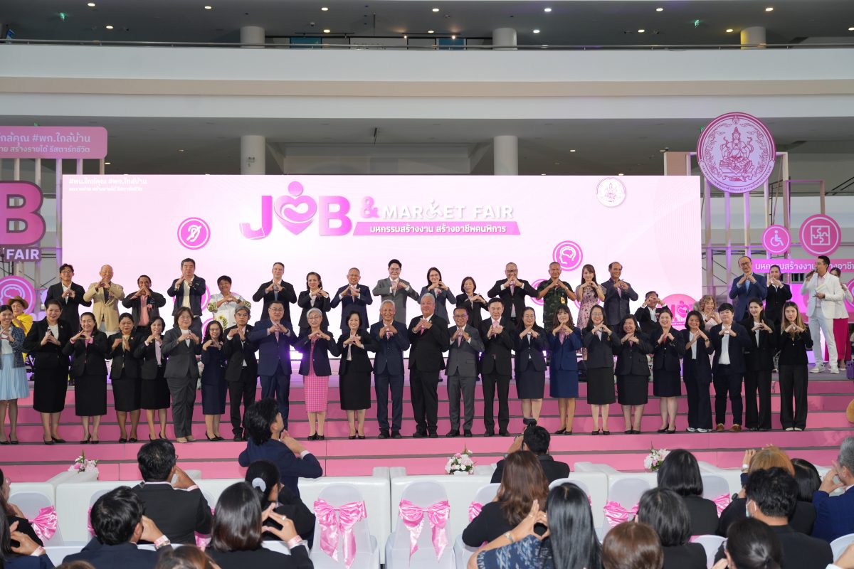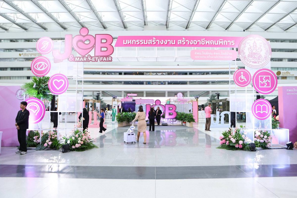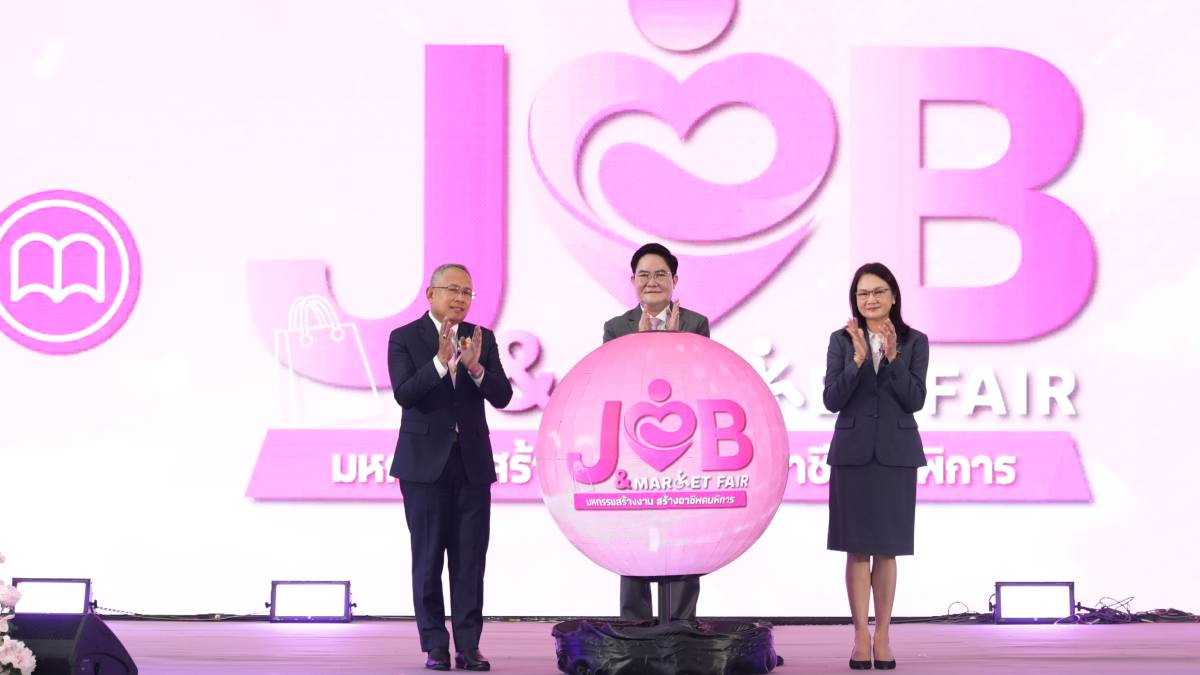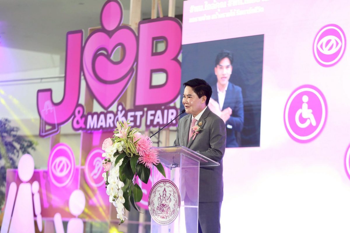 วันที่ 20 ตุลาคม 2568 นายอัครา พรหมเผ่า รัฐมนตรีว่าการกระทรวงการพัฒนาสังคมและความมั่นคงของมนุษย์ (รมว.พม.) เป็นประธานเปิดโครงการ Job and Market Fair : “มหกรรมสร้างงาน สร้างอาชีพคนพิการ” เพื่อส่งเสริมศักยภาพและสร้างโอกาสให้คนพิการมีอาชีพที่มั่นคงและยั่งยืน ด้วยการมุ่งเน้นการพัฒนาทักษะอาชีพและทักษะดิจิทัล ด้วยการเปิดพื้นที่จำหน่ายผลิตภัณฑ์สินค้า และบริการ เชื่อมโยงกับสถานประกอบการเพื่อการจ้างงานคนพิการ โดย นางสาวสนธยา บุณยภูษิต อธิบดีกรมส่งเสริมและพัฒนาคุณภาพชีวิตคนพิการ (อธิบดี พก.) กล่าวรายงาน ซึ่งมี นายกันตพงศ์ รังษีสว่าง ปลัดกระทรวงการพัฒนาสังคมและความมั่นคงของมนุษย์ (ปลัด พม.) คณะผู้บริหารกระทรวง พม. คนพิการพร้อมครอบครัวคนพิการ และผู้ดูแลคนพิการ อาสาสมัคร เครือข่ายคนพิการทั้งภาครัฐ ธุรกิจเอกชน และประชาสังคม รวมถึงสื่อมวลชนเข้าร่วมงาน รวมทั้งสิ้น จำนวน 5,000 คน ณ อาคารรัฐประศาสนภักดี (อาคาร B) ศูนย์ราชการเฉลิมพระเกียรติ 80 พรรษา กรุงเทพมหานคร