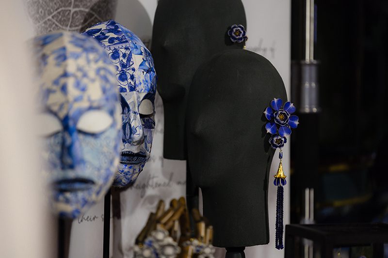 “Oriental Blue” ได้ตีความใหม่ของความผูกพันระหว่างธรรมชาติ ศิลปะ และความเชื่อ ผ่านการใช้ เซรามิกสีน้ำเงิน–ขาว ที่ครั้งหนึ่งเคยเป็นภาชนะล้ำค่าในอดีต หลอมรวมเข้ากับเฉด Midnight Blue (Siam รัตติกาล) ของเครื่องเคลือบลายคราม กลายเป็นเครื่องประดับร่วมสมัยที่ไม่เพียงสะท้อนความงาม หากยังบรรจุปรัชญาแห่ง “การซ่อมแซม” หรือ “Kintsugi” ไว้ในตัว