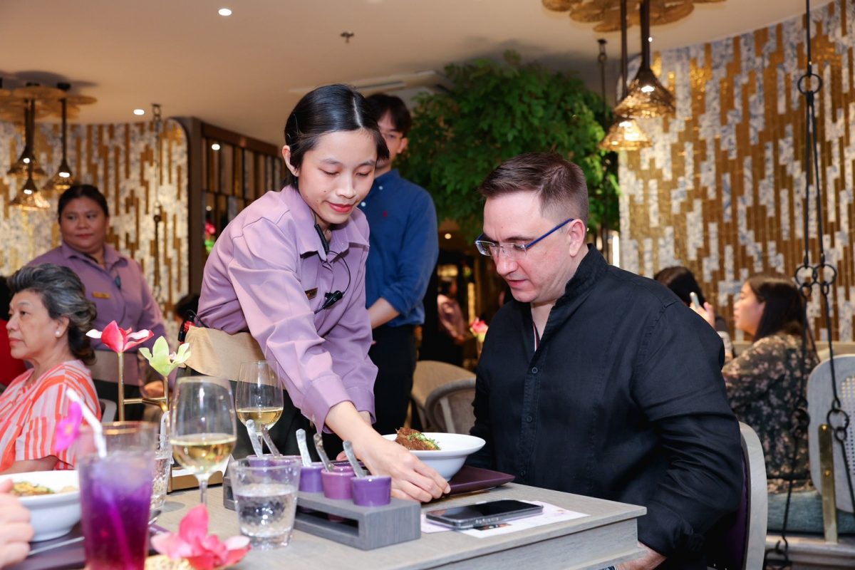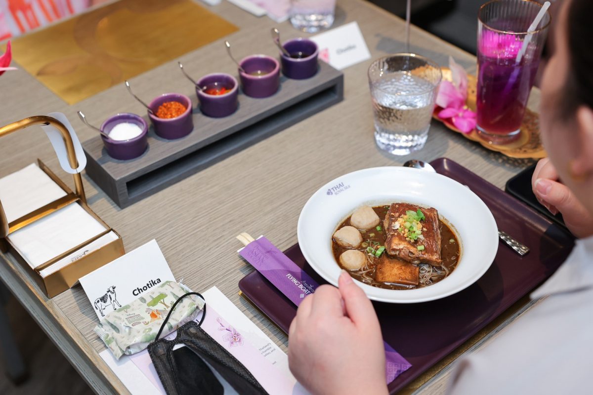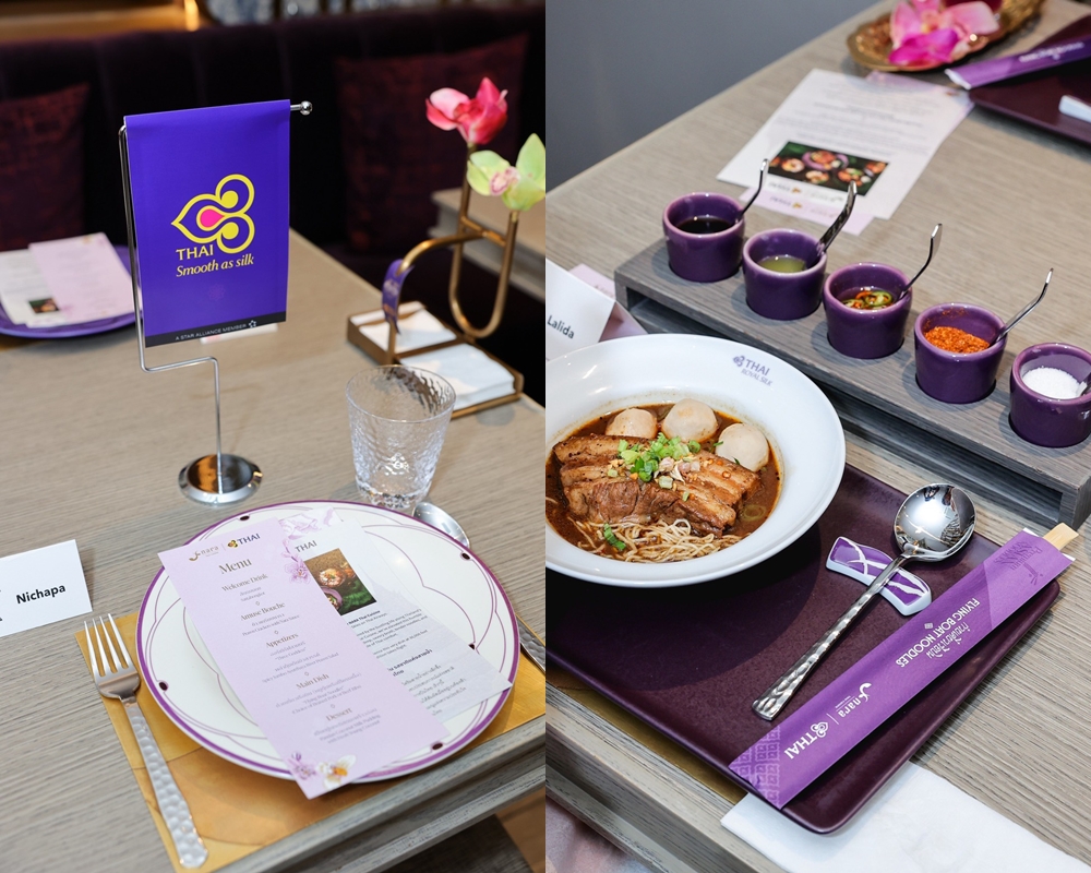 โดยวันนี้ นาราไทย คูซีน สร้างตำนานใหม่อีกครั้ง ด้วยการติดปีกให้ก๋วยเตี๋ยวเรือทยานขึ้นเหนือเมฆ ชวนสัมผัสอรรถรสบนฟ้าในชื่อเมนูหรู ‘ก๋วยเตี๋ยวเรือบิน’ (Nara Boat Noodles Sky Edition) บริการสำหรับผู้โดยสารชั้นธุรกิจ (Royal Silk Class) และเฟิร์ส คลาส (Royal First Class) เส้นทางบินยุโรป และออสเตรเลีย ตั้งแต่วันนี้จนถึงกันยายนปี 2569 โดยหมุนเสิร์ฟ 2 เมนู ‘ก๋วยเตี๋ยวน้ำตกหมูสามชั้นมันน้อยซูวีด์’ ตลอดเดือนพฤศจิกายนนี้ และปีหน้าในเดือนมีนาคม กับกรกฎาคม ส่วน ‘ก๋วยเตี๋ยวน้ำตกซี่โครงเนื้อ short ribs ซูวีด์’ เริ่มเสิร์ฟเดือนมกราคมเป็นต้นไป