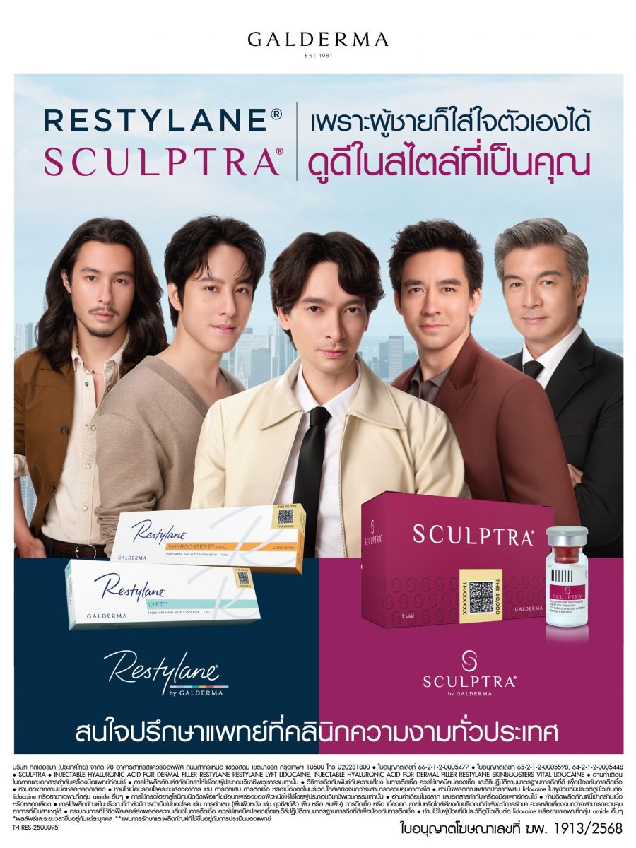 กรุงเทพฯ – กัลเดอร์มา (Galderma) ผู้นำด้านเวชศาสตร์ผิวพรรณแบบครบวงจร (The Pure-Play Dermatology Category Leader) เปิดตัวแคมเปญระดับภูมิภาค “ReSculpt for MEN” ภายใต้แนวคิด “เพราะผู้ชายก็ใส่ใจตัวเองได้ ดูดีในสไตล์ที่เป็นคุณ” เอาใจผู้ชายยุคใหม่ที่อยากกลับมาดูดีและสะท้อนตัวตนผ่านภาพลักษณ์ที่สมาร์ท และมีความมั่นใจ ดึง 5 ไอคอนเซเลบริตี้ ตัวแทน 5 กลุ่มหลักของผู้ชายยุคใหม่ มาร่วมเผยเคล็ดลับการดูแลผิวและเติมเต็มความงามในรูปแบบเฉพาะตัว นำโดย มิว ศุภศิษฏ์, ธามไท, ไท้ วสุวัส, สกล สกลธนารักษ์ และนิ้ง ปิยะลาภ พร้อมเปิดตัวแนวทางในการดูแลผิวและภาพลักษณ์เฉพาะบุคคลด้วยโปรแกรม Sculptra และ Restylane ผ่านแนวคิด “5 Personas, 5 Protocols” เพื่อตอบโจทย์ความงามของผู้ชายแต่ละบุคลิก สร้างแรงบันดาลใจให้ผู้ชายทุกคนดูแลตัวเอง และเผยตัวตนที่ดีที่สุดในแบบของคุณ