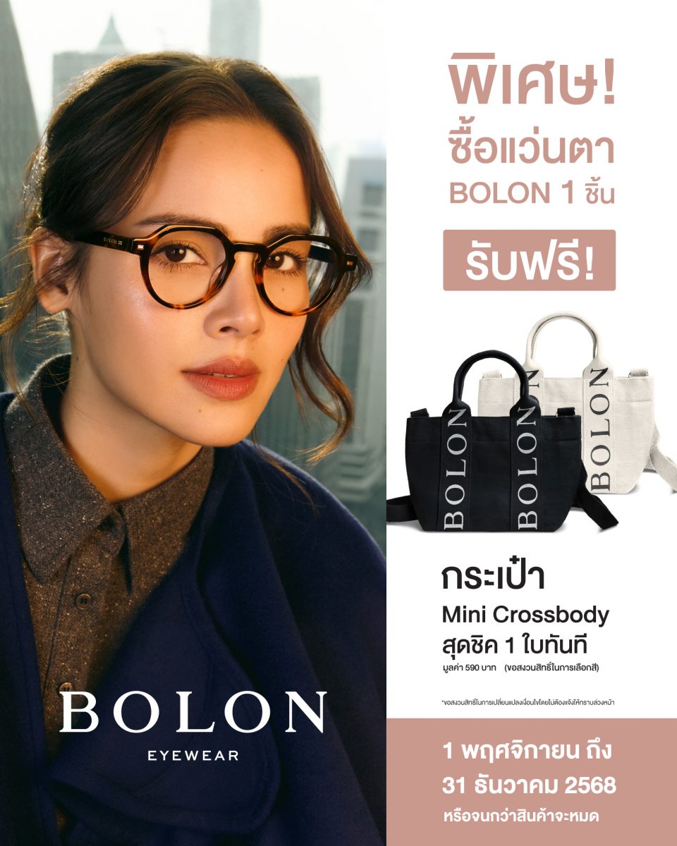 BOLON Fall/Winter 25 Collection ในแคมเปญ Beyond The Horizon มาพร้อมโปรโมชั่นพิเศษ: ซื้อแว่นตา BOLON 1 ชิ้น (ทั้งแว่นสายตาหรือแว่นกันแดด) รับฟรีกระเป๋า Cross Body Bag 1 ใบ ตั้งแต่วันนี้ถึง 31 ธันวาคม 2568 หรือจนกว่าสินค้าจะหมด