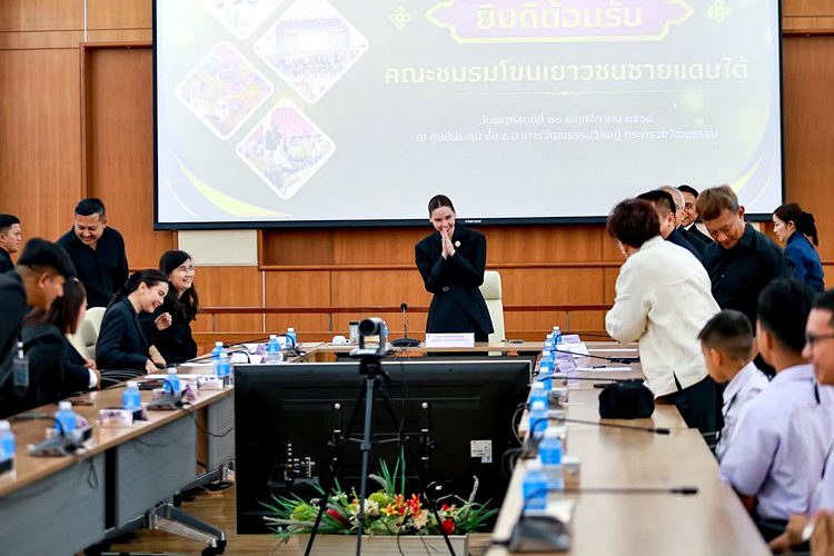 วันที่ 20 พฤศจิกายน 2568 เวลา 10.30 น. คณะเยาวชนชมรมโขนชายแดนใต้ เข้าพบ นางสาวซาบีดา ไทยเศรษฐ์ รัฐมนตรีว่าการกระทรวงวัฒนธรรม เพื่อหารือแนวทางส่งเสริม สืบสาน และอนุรักษ์ศิลปะการแสดงโขน อันเป็นมรดกทางวัฒนธรรมไทยที่ทรงคุณค่า โดยมี นายไชยพร นิยมแก้ว รองผู้ว่าราชการจังหวัดปัตตานี นางยุถิกา อิศรางกูร ณ อยุธยา อธิบดีกรมส่งเสริมวัฒนธรรม นางสาวเพชรรัตน์ สายทอง หัวหน้าผู้ตรวจราชการกระทรวงวัฒนธรรม นายฐปนัท วงศ์ศานติบูรณ์ วัฒนธรรมจังหวัดปัตตานี คณะครูอาจารย์ เยาวชนจาก 3 จังหวัดชายแดนใต้ และเจ้าหน้าที่ที่เกี่ยวข้อง เข้าร่วม ณ ศูนย์ประชุมกระทรวงวัฒนธรรม ชั้น 8 อาคารวัฒนธรรมวิศิษฏ์