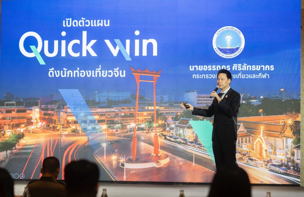 นายอรรถกร ศิริลัทธยากร รัฐมนตรีว่าการกระทรวงการท่องเที่ยวและกีฬา เปิดเผยถึงแผนงานเชิงรุกเร่งด่วน “Quick Win” เพื่อตอบรับช่วงไฮซีซั่นการท่องเที่ยว โดยตั้งเป้าหมายสำคัญในการดึงนักท่องเที่ยวชาวจีนกลับมาเยือนประเทศไทยให้ได้ 2 ล้านคน ภายในระยะเวลา 3 เดือน แผนดังกล่าวเป็นการผนึกกำลังจากทุกภาคส่วนเพื่อฟื้นความเชื่อมั่น และตอกย้ำภาพลักษณ์การท่องเที่ยวไทยบนเวทีโลกอีกครั้ง