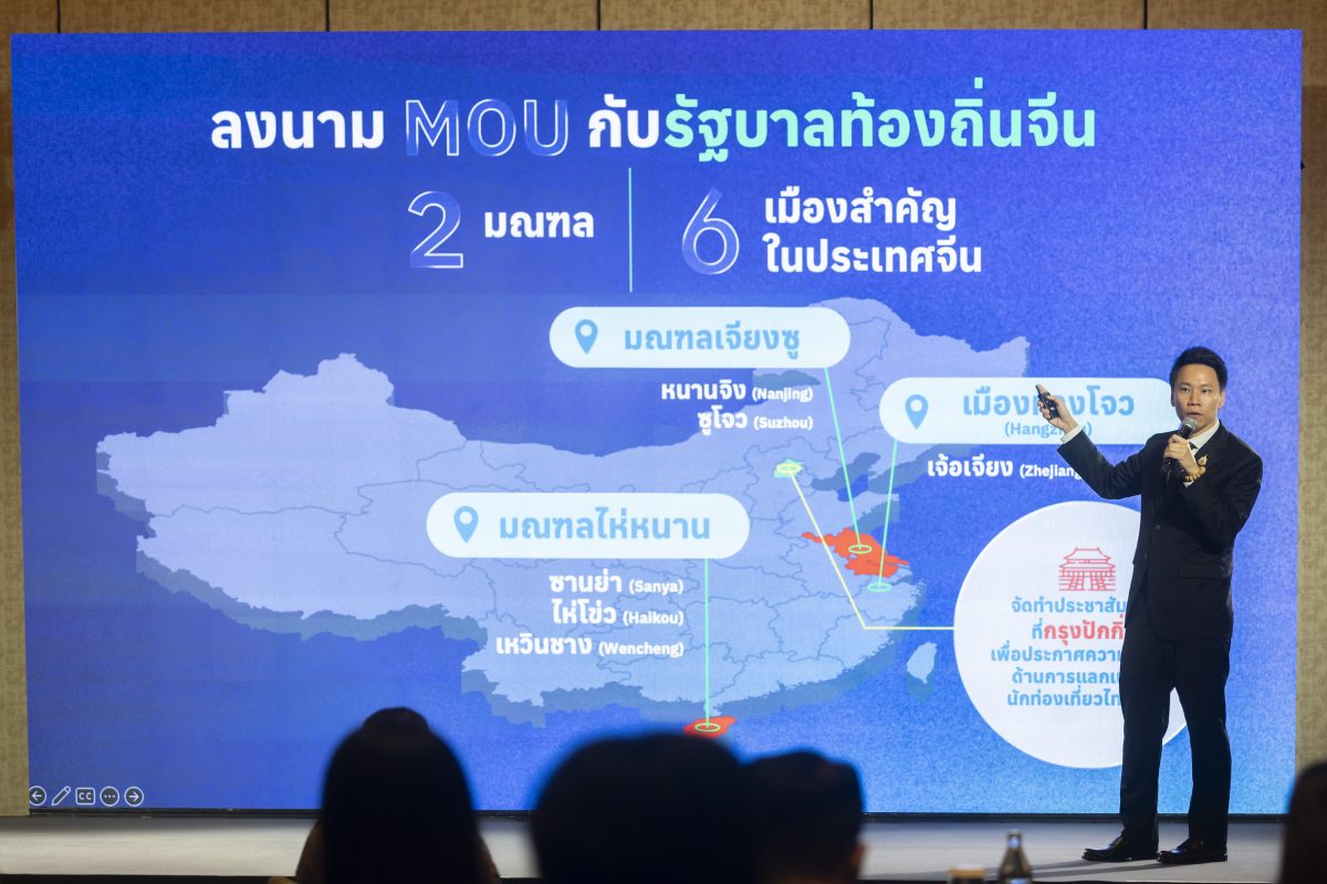 นอกจากนี้ กระทรวงการท่องเที่ยวฯ ยังได้เซ็น MOU 2 มณฑล 6 เมือง สำคัญของจีน ได้แก่ มณฑลไห่หนาน เมือง Sanya (ซานย่า), Haikou (ไห่โข่ว) Wenchang (เหวินชาง) มณฑลเจียงซู (Jiangsu Province) เมือง Nanjing (หนานจิง), Suzhou (ซูโจว) และ เมือง Hangzhou (หางโจว) เพื่อเป็นกลไกสำคัญในการแลกเปลี่ยนนักท่องเที่ยวโดยตรง”