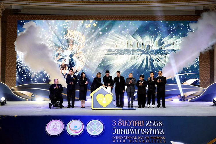 วันที่ 3 ธันวาคม 2568 นายอัครา พรหมเผ่า รัฐมนตรีว่าการกระทรวงการพัฒนาสังคมและความมั่นคงของมนุษย์ (รมว.พม.) เป็นประธานในพิธีเปิดงานวันคนพิการสากล ประจำปี 2568 ภายใต้แนวคิด การส่งเสริมสังคมที่ครอบคลุมและเอื้อต่อคนพิการ เพื่อขับเคลื่อนความก้าวหน้าและการพัฒนาทางสังคมอย่างยั่งยืน โดยมี นางสาวสนธยา บุณยภูษิต อธิบดีกรมส่งเสริมและพัฒนาคุณภาพชีวิตคนพิการ กล่าวรายงาน พร้อมมอบโล่ประกาศเกียรติคุณยกย่องเชิดชูเกียรติแก่คนพิการต้นแบบ ประจำปี 2568 และสื่อมวลชนสร้างสรรค์เพื่อส่งเสริมคนพิการ ประจำปี 2568 อีกทั้งเป็นสักขีพยานในพิธีลงนามบันทึกความเข้าใจความร่วมมือ 2 ฉบับ ได้แก่ 1) พิธีลงนามบันทึกความเข้าใจความร่วมมือ (MOU) ว่าด้วยการส่งเสริมระบบขนส่ง เพิ่มช่องทางการจำหน่ายผลิตภัณฑ์สินค้า รวมทั้งการพัฒนาศักยภาพ เพื่อขยายโอกาสในการสร้างอาชีพ เพิ่มรายได้สำหรับคนพิการและผู้ดูแลคนพิการ ระหว่าง กรมส่งเสริมและพัฒนาคุณภาพชีวิตคนพิการ กระทรวง พม. กับ บริษัท ไปรษณีย์ไทย จำกัด และ 2) บันทึกความเข้าใจความร่วมมือ (MOU ) ว่าด้วยการประยุกต์ใช้เทคโนโลยีอวกาศและภูมิสารสนเทศเพื่อการส่งเสริม และพัฒนาคุณภาพชีวิตคนพิการด้วยนวัตกรรมภูมิสารสนเทศ ระหว่าง กรมส่งเสริมและพัฒนาคุณภาพชีวิตคนพิการ กระทรวง พม. กับ สำนักงานพัฒนาเทคโนโลยีอวกาศและภูมิสารสนเทศ (องค์การมหาชน) โดยมี นายกันตพงศ์ รังษีสว่าง ปลัดกระทรวงการพัฒนาสังคมและความมั่นคงของมนุษย์ (ปลัด พม.) , คณะผู้บริหารกระทรวง พม. , สมาคมสภาคนพิการทุกประเภทแห่งประเทศไทย , องค์การคนพิการแต่ละประเภท , ภาคีเครือข่ายคนพิการ , คนพิการ , ผู้ดูแลคนพิการ , ผู้แทนหน่วยงานที่เกี่ยวข้อง และสื่อมวลชน เข้าร่วมงาน ณ ห้องรอยัล จูบิลี่ บอลรูม อาคารชาเลนเจอร์ อิมแพ็ค เมืองทองธานี จังหวัดนนทบุรี