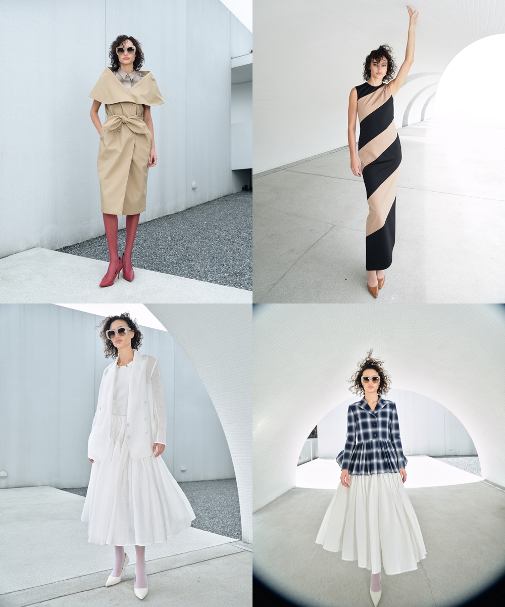 VICKTEERUT บอกเล่าคอลเลคชั่นผ่านเครื่องแต่งกายลำลองสำหรับช่วงเวลาพักผ่อนหรือ Cruise Collection ประจำปี 2026 อย่าง เสื้อเบลเซอร์สองกระดุม สวมทับเสื้อเชิ้ตแขนกุดตกแต่งกระดุมคริสตัล พร้อมกางเกงเข้าชุด ชุดสูทกางเกงที่ได้รับอิทธิพลมาจากเสื้อผ้าผู้ชายซึ่งได้ถูกตัดเย็บด้วยเนื้อผ้าที่ให้ความรู้สึกหรูหรา และบอบบางอย่างผ้าไหมเคป ด้วยเทคนิคที่ทำให้เสื้อผ้าเป็นทรงที่ไม่ได้ดูแข็งจนเกินไป (Unstructured) สวมใส่สบายเมื่อเคลื่อนไหวตัว เป็นความเท่ และความสมดุลที่ลงตัวระหว่าง femininity และ masculinity ส่วนผ้าฝ้ายเนื้อบางละเอียด ได้ถูกนำมาตัดเย็บ เป็นเสื้อเบลเซอร์สองกระดุมตัวหลวม สวมใส่กับกระโปรงระบายทรงบานให้ความรู้สึกรีแลกซ์แต่ก็ยังเตะตาเมื่อสวมใส่ เสื้อเชิ้ต และกระโปรงผ้าซาติน ที่มีแนวกระดุมโลหะเวียนเป็นก้นหอยรอบตัว เป็นดีเทลที่ทำให้ผู้สวมใส่สามารถปรับความยาวของตัวเสื้อ หรือกระโปรงได้ นอกจากนี้ยังมีเดรส และเสื้อปกเคปตั้งอันใหญ่ที่ดูมีความเป็นสถาปัตยกรรม สวย สะอาดตา และโดดเด่นเมื่อสวมใส่
