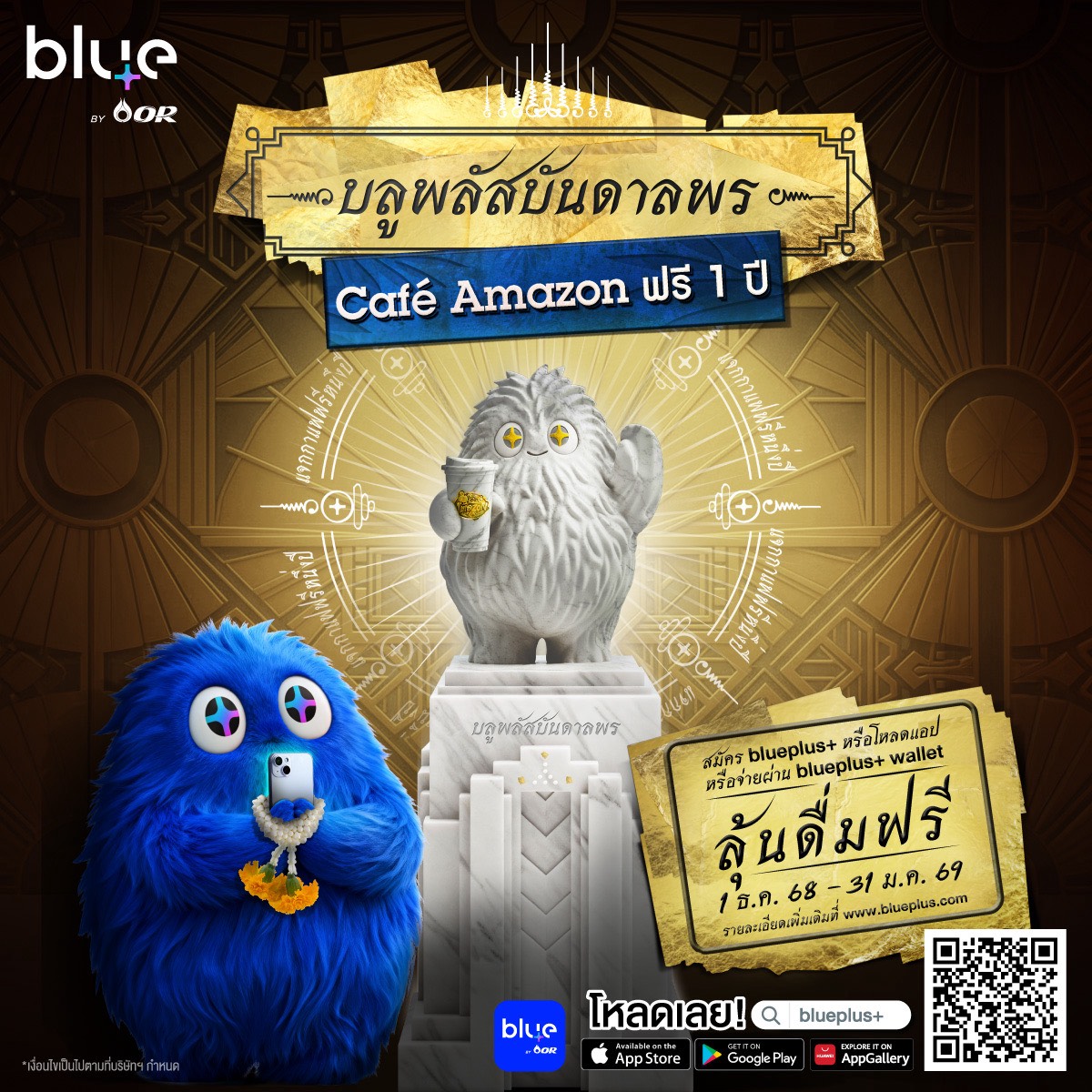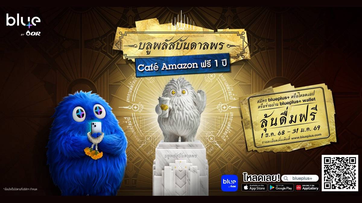 blueplus+ แอปพลิเคชันที่เชื่อมโยงทุก Ecosystem ในเครือโออาร์ จัดแคมเปญ “บลูพลัสบันดาลพร Café Amazon ฟรี 1 ปี” เพื่อขอบคุณสมาชิกที่ให้การสนับสนุนมาอย่างต่อเนื่อง พร้อมมอบโอกาสให้ทุกคนได้มีสิทธิ์ร่วมลุ้นรับคูปอง Café Amazon ดื่มฟรีตลอดปี รวมมูลค่ากว่า 2,190,000 บาท ระยะเวลาของแคมเปญระหว่างวันที่ 1 ธันวาคม 2568 – 31 มกราคม 2569 โดยสมาชิกสามารถสะสมสิทธิ์ลุ้นรางวัลได้จาก 3 ช่องทาง ได้แก่