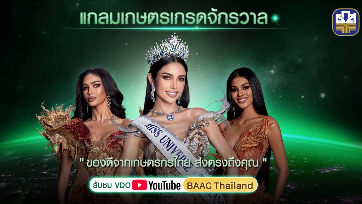 ธ.ก.ส. ชวนสัมผัสความงามระดับ ” จักรวาล “ กับวิดีโอแคมเปญ “แกลมเกษตร เกรดจักรวาล” ดึง 3 ท็อป จากเวที Miss Universe Thailand 2025 วีนา-ปวีนา ซิงห์ มิสยูนิเวิร์สไทยแลนด์ 2025, แพรว-แพรววณิชยฐ์ เรืองทอง รองอันดับ 1 Miss Universe Thailand 2025 และ เดล-นฤมล พิมพ์ภักดี รองอันดับ 2 มิสยูนิเวิร์สไทยแลนด์ 2025 ชี้เป้า! สินค้าแกลมเกษตร ผ่านคลิปวิดีโอโพรโมตสินค้าเกษตรที่ติดแกลม พัฒนาคุณภาพสู่เกรดจักรวาล ผ่าน Concept “แกลมเกษตร เกรดจักรวาล” สินค้าจากเกษตรกรไทยที่ไม่ใช่แค่ระดับโลก แต่เป็นระดับจักรวาล ที่เจิดจรัสในแบบของไทย โดยในเนื้อหาวีดีโอ นำเสนอสินค้าแกลมเกษตร เช่น กระเป๋า จากกระจูด แบรนด์วรรณี VARNI Craftstay , ผ้าบาติก จากแบรนด์ฅญาบาติก , เครื่องประดับไข่มุกแท้จากอันดามัน แบรนด์มุกสำสี นอกจากนี้ยังมีการนำเสนอเมนูอาหารจากสินค้าของเกษตรกร ได้แก่ ข้าวอุ่นอิ่ม , ใบบัวบกทอดกรอบ จากบ้านหม่อมแช่ม , สินค้ามะนาวแปรรูป จาก Lemon Me Farm และ กวยจั๊บอุบล และก๋วยเตี๋ยวพร้อมทานจากแบรนด์มาดามโซ่ เป็นต้น ซึ่งทั้งหมดเป็นแบรนด์สินค้าแกลมเกษตร จากลูกค้าที่ได้รับการสนับสนุนจาก ธ.ก.ส.