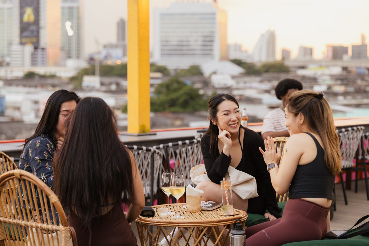 “Three Peas Rooftop Block Party ไม่ได้เป็นเพียงแค่รูฟท็อป แต่คือพื้นที่ที่เชื้อเชิญให้ทุกคนมาค้นพบและแสดงออกถึงตัวตนอย่างอิสระ” พลอย-ชาลิสา เตียนโพธิทอง ผู้ก่อตั้ง The Fig Lobby Bangkok กล่าว