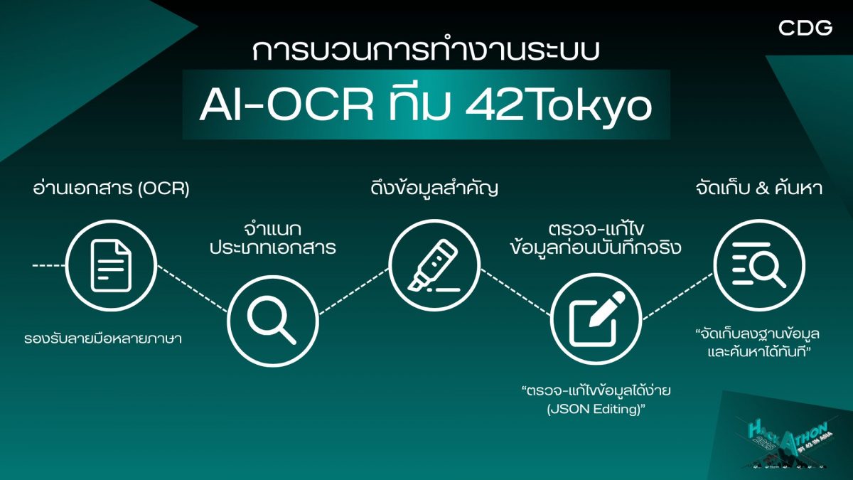 กลุ่มบริษัทซีดีจี ผนึก 42 Bangkok และเครือข่ายทั่วเอเชีย จัด Hackathon 2025 ดึงคนรุ่นใหม่สายเทคพัฒนาโซลูชัน AI จัดการเอกสารภาครัฐอย่างเป็นระบบ ทีม Kaetai 42Tokyo จากญี่ปุ่น คว้าชัยด้วยแนวคิดที่เริ่มจากการจัดเตรียมข้อมูล (Data Labeling) ให้ AI เรียนรู้จากข้อมูลจริง และพิสูจน์ผลลัพธ์ได้ทันทีผ่านการอ่านลายมือ ผสานจุดเด่นด้านการใช้งานจริงทันที่ด้วยหน้าจอแบบ Ready-to-Use ที่เข้าใจง่าย พร้อมจำแนกเอกสารได้หลายภาษา ปกปิดข้อมูลส่วนบุคคลอัตโนมัติตามมาตรฐาน PDPA สะท้อนบทบาทคนรุ่นใหม่ในการผลักดันอนาคต Smart Governance ของไทย
