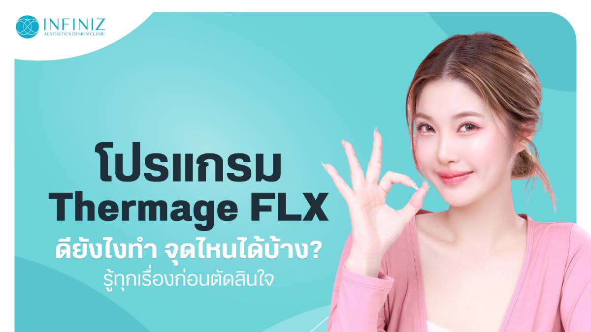 แต่ก่อนจะตัดสินใจไปทำ เรามาทำความรู้จักกันก่อนดีกว่า ว่าเจ้าโปรแกรม Thermage FLX คืออะไร มีข้อดีเด็ด ๆ ยังไง และช่วยแก้ปัญหาผิวแบบไหนได้บ้าง? จะได้เลือกได้ตรงใจและเหมาะกับปัญหาผิวของแต่ละคน
