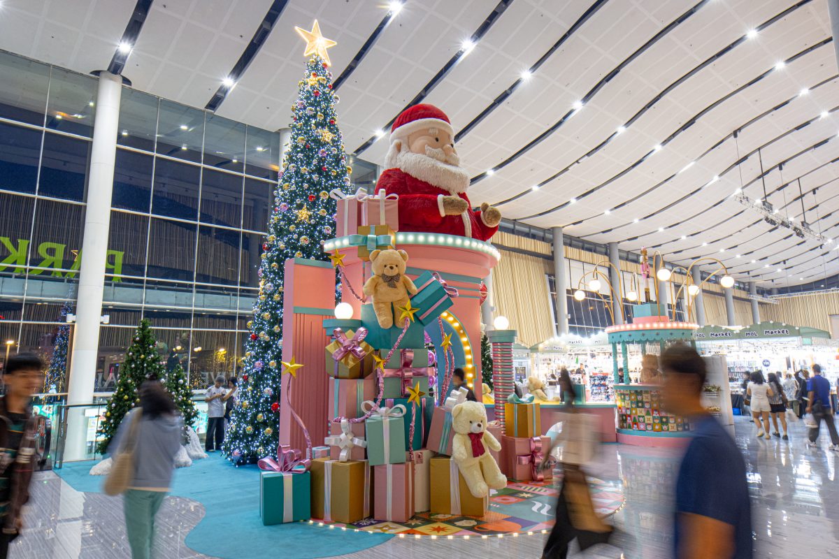 เมื่อเข้าไปด้านใน ความสนุกสนานเริ่มชัดเจนขึ้นเมื่อได้พบกับ ชิงช้าสวรรค์แฟนตาซี ขนาดใหญ่ที่หมุนได้จริง เสียงกลไกเบา ๆ ผสานกับไฟ LED ที่กระพริบเป็นจังหวะสร้างบรรยากาศเหมือนอยู่ในสวนสนุกของซานต้า รอบฐานถูกล้อมด้วยของขวัญหลากสีและเสาโคมไฟเรืองแสงที่ทำให้พื้นที่ดูอบอุ่นและเต็มไปด้วยมนตร์วิเศษของฤดูกาล ถัดไปคือ แคปซูลลำเลียงของขวัญ ที่ถูกออกแบบให้เหมือนเครื่องจักรภายในโรงงานลับของซานต้า ช่องใส่ของขวัญและกลไกจำลองทำให้รู้สึกเสมือนกำลังชมกระบวนการผลิตจริง ช่วยต่อเติมเรื่องราวของโรงงานนี้ให้สมบูรณ์แบบยิ่งขึ้น บริเวณ สายพานผลิตของขวัญ ของขวัญลำเรียง ราวกับกำลังเคลื่อนสู่จุดแพ็กกิ้ง บางช่วงมีเอลฟ์ตัวจิ๋วกำลังทำงานอย่างขะมักเขม้น เพิ่มจินตนาการน่ารักและ น่าประทับใจ สุดท้ายของเส้นทางคือ โซนรถลากซานต้า รถลากสีสดใสตั้งเด่นพร้อมถุงของขวัญใบใหญ่ ข้างกันคือซานต้าคลอสที่รอทักทายผู้มาเยือน พร้อมกับสโนว์แมนตัวกลมที่ยืนต้อนรับท่ามกลางต้นคริสต์มาสหลายต้นประดับไฟสว่างไสว ช่วยเติมเต็มเรื่องราวของ “โรงงานแห่งความสุข” ให้สมบูรณ์แบบ ทั้งยังเป็นมุมถ่ายรูปยอดฮิตที่ผู้มาเยือนสามารถเก็บความประทับใจแบบจัดเต็มในทุกมุมมอง