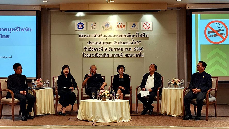วันที่ 9 ธ.ค. 68 ที่โรงแรม มิราเคิล แกรนด์ คอนเวนชั่น กรุงเทพฯ คณะแพทยศาสตร์โรงพยาบาลรามาธิบดี ร่วมกับ สำนักงานกองทุนสนับสนุนการสร้างเสริมสุขภาพ (สสส.) และสถาบันวิจัยระบบสาธารณสุข (สวรส.) จัดงานเสวนา “เปิดข้อมูลสถานการณ์บุหรี่ไฟฟ้า: ประเทศไทยจะเดินต่ออย่างไร?”