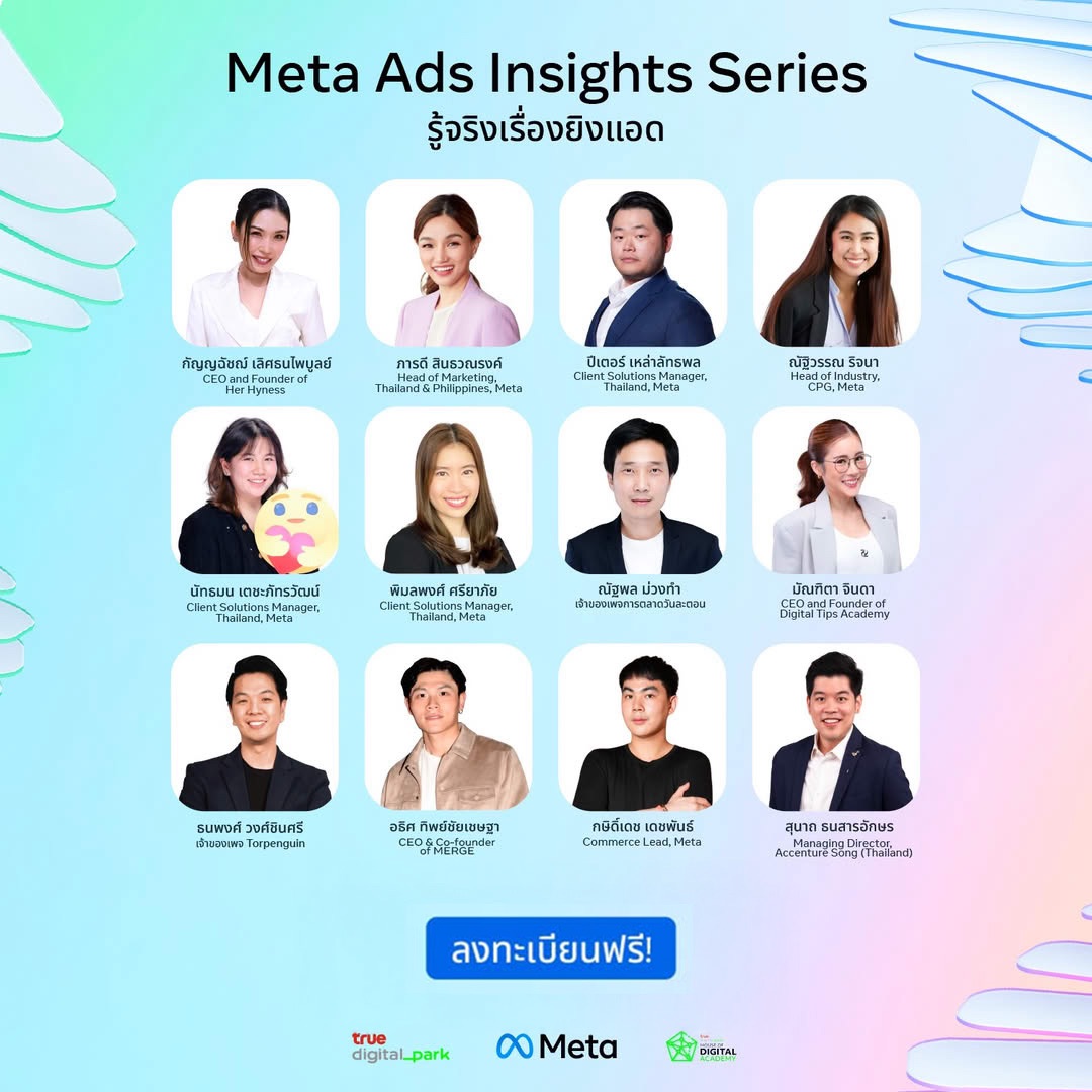ในโลกที่ข้อมูลคือพลัง ซีรีส์ “Meta Ads Insights Series: รู้จริงเรื่องยิงแอด” จึงเป็นพันธมิตรสำคัญที่จะช่วยให้นักการตลาดและผู้ประกอบการไทยก้าวทันเทรนด์ เข้าใจผู้บริโภค และสร้างผลลัพธ์ที่เหนือกว่าในการทำโฆษณาดิจิทัลบนแพลตฟอร์ม Meta พร้อมแล้วหรือยังที่จะพาธุรกิจของคุณให้เติบโตแบบมั่นใจด้วยความรู้จริงจากผู้เชี่ยวชาญ