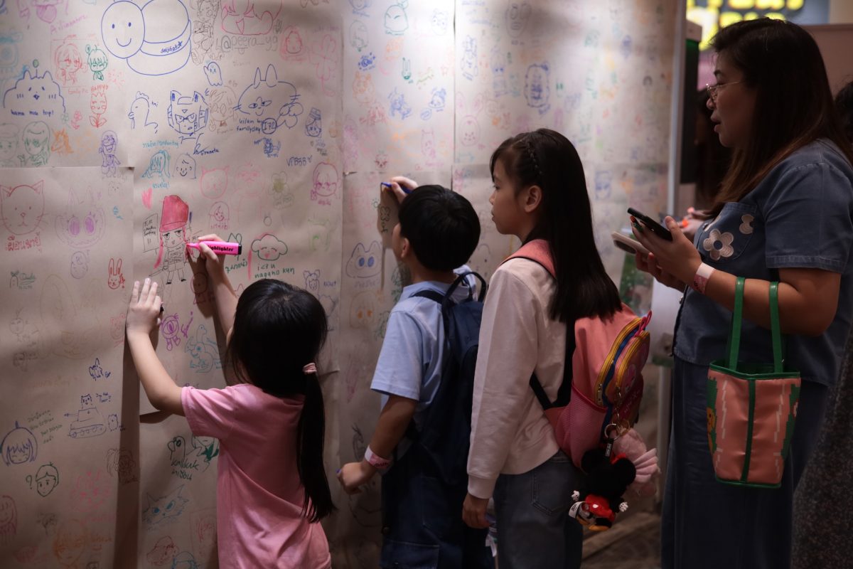 กระดาน “ประกอบร่างสร้างเส้น”: พื้นที่ให้ผู้ร่วมงานวาดภาพและเขียนข้อความประทับใจ
