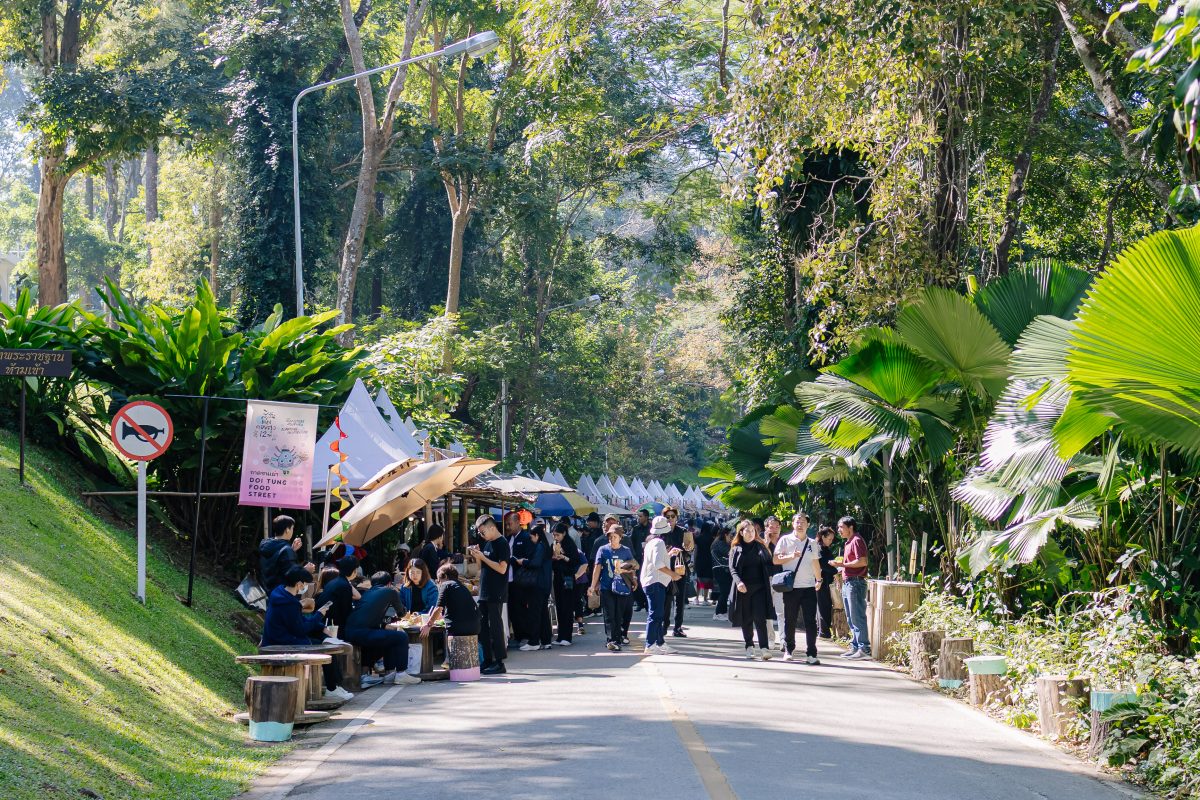 - ถนนคนเดินดอยตุง รวมงานหัตถกรรมเสื้อผ้า กระเป๋าทอมือ อาหารพื้นถิ่น และเมนูพิเศษ เช่น พิซซ่าหมูดำ ข้าวซอย น้ำเงี้ยว น้ำพริกหนุ่ม รวมถึงไอศกรีม Soft Serve จากวัตถุดิบที่ปลูกบนดอยตุง