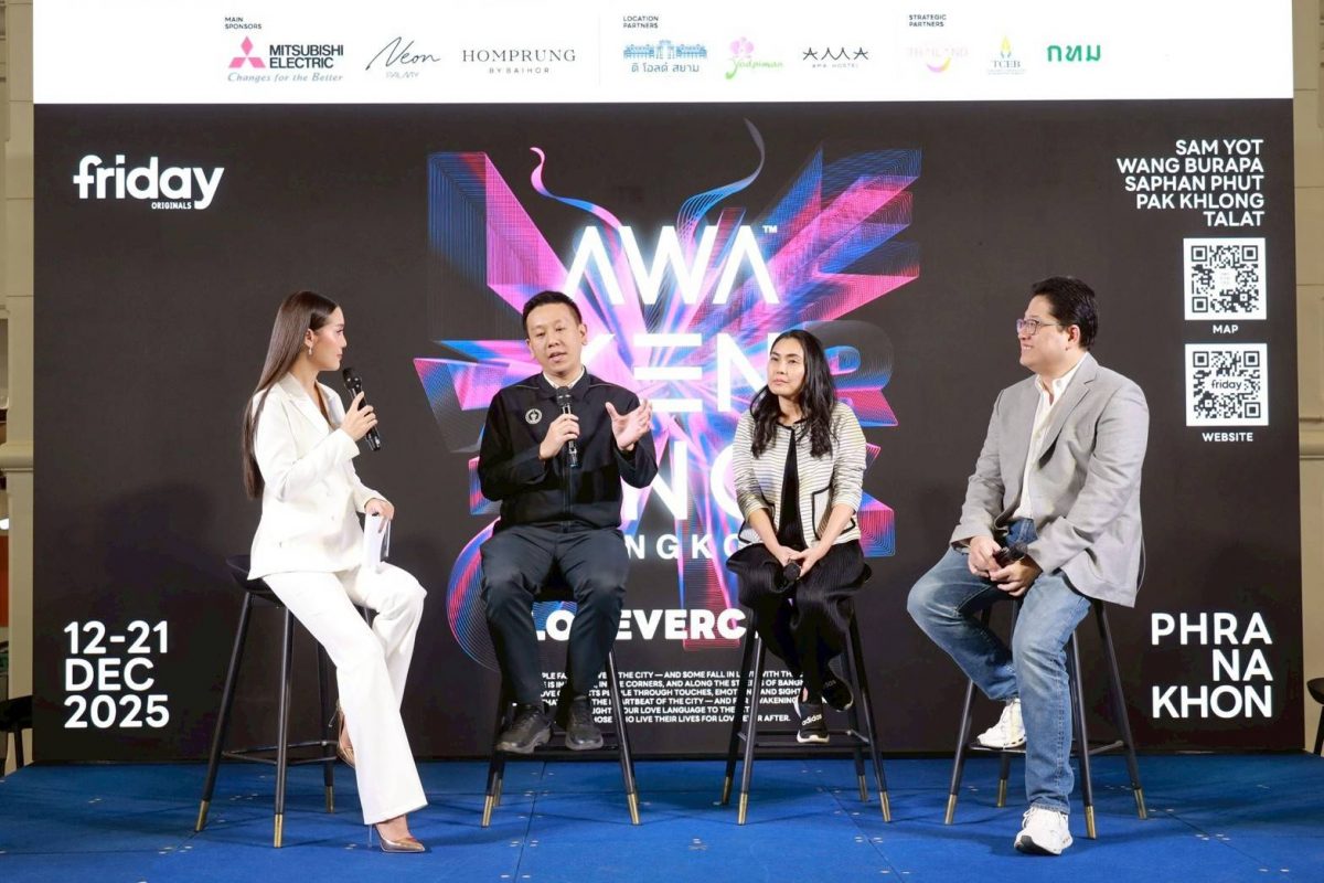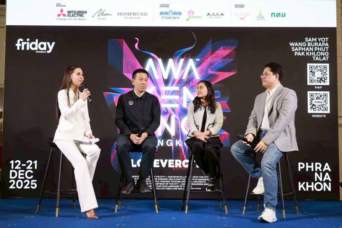 “Awakening Bangkok 2025” จัดโดย “Friday” แบรนด์ไลฟ์สไตล์ที่มุ่งสร้างสีสันความสนุกและพลังงานใหม่ ๆ ให้กับกรุงเทพฯ ด้วยการสนับสนุนจาก Mitsubishi Electric, SangSom และ หอมปรุงบายใบห่อ ร่วมด้วย การท่องเที่ยวแห่งประเทศไทย, สำนักงานส่งเสริมการจัดประชุมและนิทรรศการ (องค์การมหาชน), กรุงเทพมหานคร, ดิ โอลด์ สยาม พลาซ่า, ยอดพิมานริเวอร์วอล์ค, ตลาดยอดพิมาน และ AMA Hostel โดยนับเป็นเทศกาลเทศกาลแสงไฟและศิลปะดิจิทัลครั้งที่สองของปีที่จัดขึ้นในกรุงเทพฯ สานต่อความสำเร็จของ Awakening Song Wat 2025 ที่จัดขึ้นเมื่อช่วงกลางปีที่ผ่านมา ภายใต้ความตั้งใจที่จะมุ่งเน้นบทบาทของเทศกาลแสงสีในการกระตุ้นเศรษฐกิจกลางคืน (Night-time Economy) ให้เติบโตอย่างสร้างสรรค์ และดึงดูดผู้คน เพื่อปลุกย่านเมืองเก่าให้กลับมามีชีวิตชีวายิ่งกว่าเดิม