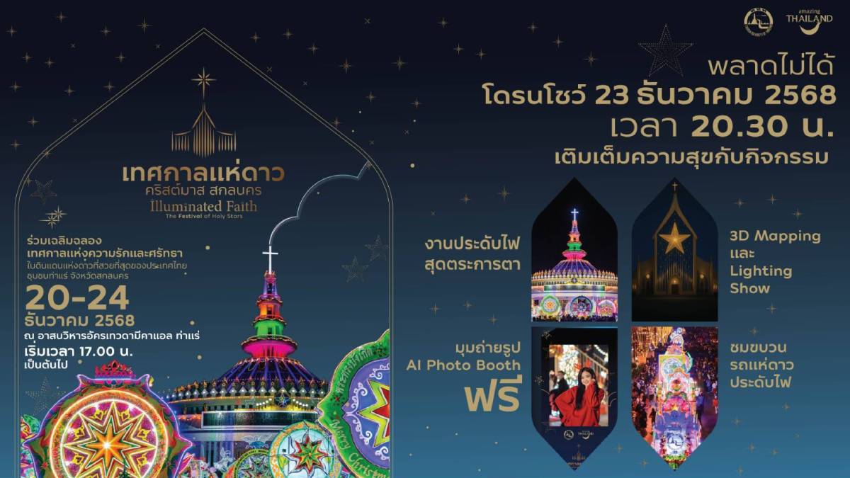 การท่องเที่ยวแห่งประเทศไทย พร้อมต้อนรับทุกคนสู่เทศกาลแสงสีสุดอบอุ่น ภายใต้แนวคิด “Illuminated Faith: The Festival of Holy Stars” กับงานประดับไฟและการแสดงแสงสีที่ร้อยเรียงเรื่องราวของ ดวงดาวแห่งศรัทธา ความรัก และความสุข