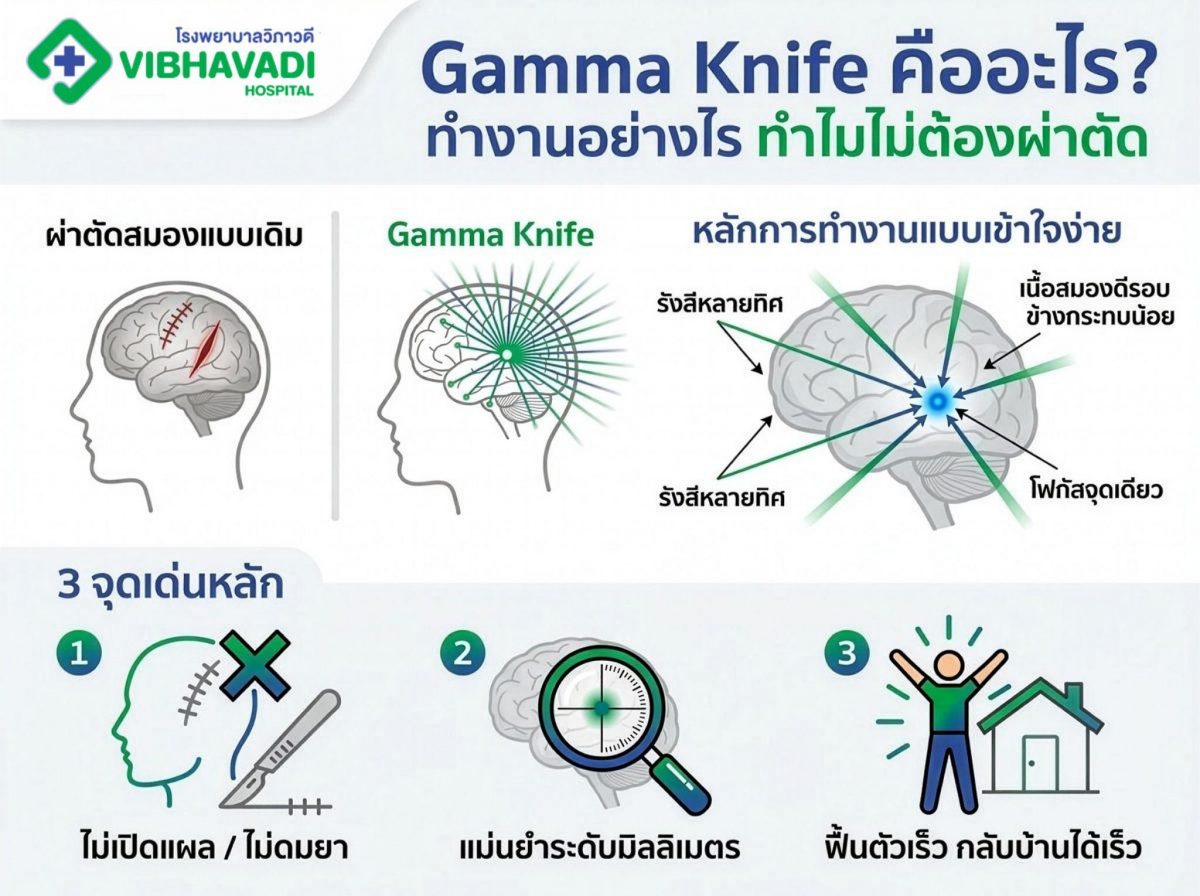 ศัลยศาสตร์ประสาทยุคใหม่ได้ก้าวพ้นภาพจำของการผ่าตัดใหญ่ เทคโนโลยีอย่าง Gamma Knife ช่วยเพิ่มทางเลือกในการรักษาโรคสมองด้วยความแม่นยำ เจ็บน้อย และฟื้นตัวเร็ว โดยมุ่งเน้น คุณภาพชีวิตหลังการรักษา อย่างไรก็ตาม แนวทางที่เหมาะสมต้องผ่านการประเมินรายบุคคลโดยแพทย์เฉพาะทาง