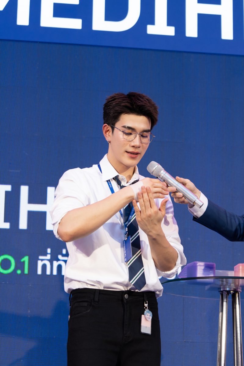 บรรยากาศภายในงาน ‘Pop-up: MEDIHEAL DERMA SHOP’ จัดเต็มท่ามกลางสื่อมวลชน ชาวสยามแฟนคลับล้นทะลัก เพราะ MEDIHEAL ขนไอเทมดูแลผิวตัวท็อปมาแบบครบเซต โดยเฉพาะ Toner Pad โทนเนอร์แพดอันดับ 1 จากเกาหลีใต้ที่หลายคนยกให้เป็นจุดเริ่มต้นของผิวดี ช่วยดูแลได้ครอบคลุมหลายปัญหาผิว และเข้าสู่ช่วงไฮไลต์เมื่อ ‘โฟร์ท ณัฐวรรธน์’ แบรนด์แอมบาสเดอร์ MEDIHEAL Toner Pad ปรากฏตัวบนเวทีด้วยลุคหนุ่มออฟฟิตที่จริงใจออร่าจับ งานผิวสุขภาพดี จนเห็นแล้วเชื่อเลยว่าผิวดีมีอยู่จริง แถมยังขึ้นมาแชร์เคล็ดลับ ‘เดอร์มาโซลูชันเพื่อผิวสุขภาพดี’ แบบไม่มีกั๊กอีกด้วย และยิ่งทำให้แฟนๆ ใจละลายกว่าเดิมเพราะกิจกรรมพิเศษสุดเอ็กซ์คลูซีฟที่ได้ใกล้ชิด ‘โฟร์ท’ ทั้งเล่นเกมและถ่ายภาพร่วมกับผู้โชคดีบนเวที เรียกเสียงกรี๊ด ดังสนั่นตลอดกิจกรรมเติมความพีกความฟินให้บรรยากาศในงานยิ่งขึ้นไปอีกขั้น