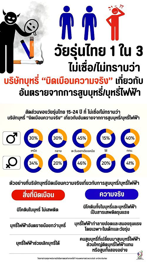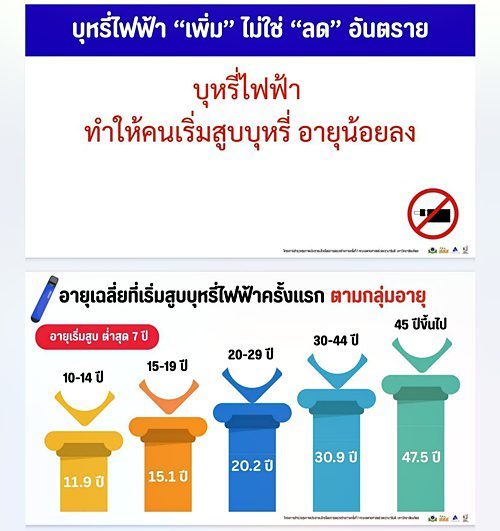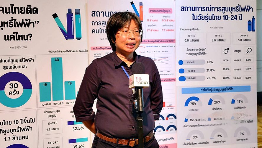 รศ.พญ.เริงฤดี ปธานวนิช หัวหน้าโครงการสำรวจสุขภาพประชาชนไทยโดยการตรวจร่างกายครั้งที่ 7 คณะแพทยศาสตร์โรงพยาบาลรามาธิบดี เปิดเผยข้อมูลที่น่าตกใจว่า ประเทศไทยมีเด็กและเยาวชนอายุระหว่าง 10–19 ปี สูบบุหรี่ไฟฟ้ามากกว่า 400,000 คน โดยร้อยละ 51 เป็นผู้ที่เพิ่งเริ่มสูบภายในช่วง 1 ปีที่ผ่านมา สะท้อนให้เห็นถึงการเพิ่มขึ้นของนักสูบหน้าใหม่อย่างต่อเนื่อง ทั้งนี้ก่อนมีการระบาดของบุหรี่ไฟฟ้า ประเทศไทยมีนักสูบหน้าใหม่เพิ่มขึ้นเฉลี่ยปีละ 200,000–300,000 คน แต่หลังจากมีการแพร่ระบาดของบุหรี่ไฟฟ้าพบว่า ในช่วงปี 2567–2568 ตัวเลขเพิ่มสูงขึ้นอย่างผิดปกติถึงกว่า 700,000 คน ขณะที่พบเด็กอายุน้อยที่สุดเพียง 7 ปี เริ่มสูบบุหรี่ไฟฟ้าแล้ว