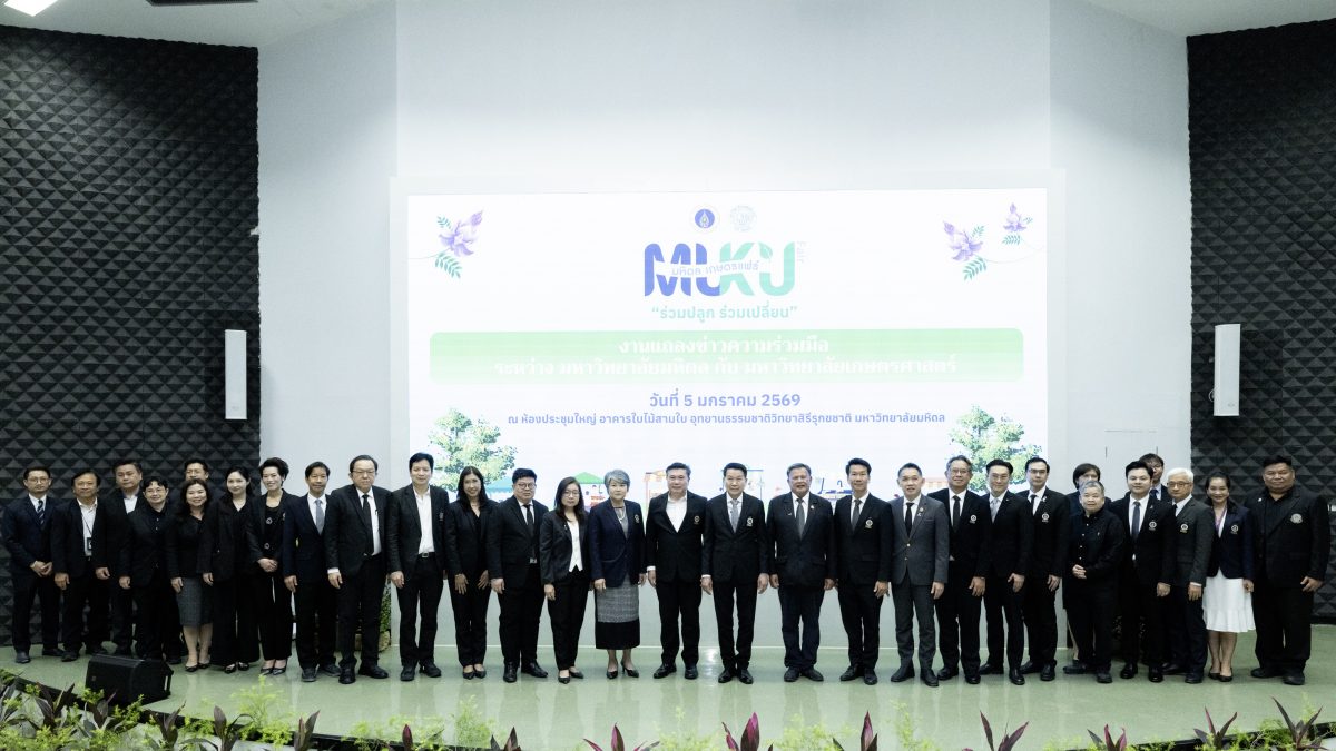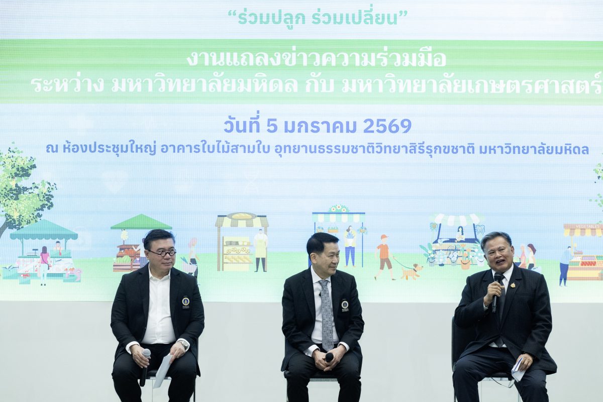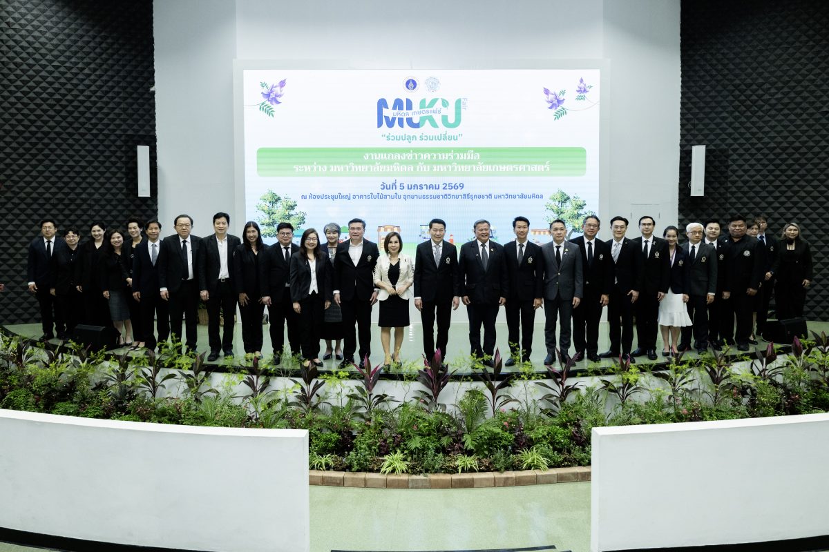 [5 มกราคม 2569 – นครปฐม] – มหาวิทยาลัยมหิดล จับมือ มหาวิทยาลัยเกษตรศาสตร์ ประกาศความร่วมมือครั้งประวัติศาสตร์ จัดงาน “มหิดล – เกษตรแฟร์ 2569” (MU x KU Fair 2026) ระหว่างวันที่ 14-18 มกราคม 2569 ณ มหาวิทยาลัยมหิดล ศาลายา พลิกโฉมงานแฟร์สู่ “ห้องเรียนไร้กำแพง” ภายใต้แนวคิด “ร่วมปลูก ร่วมเปลี่ยน” (Grow Together, Change Together) ผสานความแกร่ง “การแพทย์” และ “เกษตรกรรม” สร้างระบบนิเวศสุขภาพครบวงจร พร้อมโชว์ศักยภาพนวัตกรรมสีเขียวเพื่อขับเคลื่อนสังคมไทยสู่ยุค Carbon Neutrality