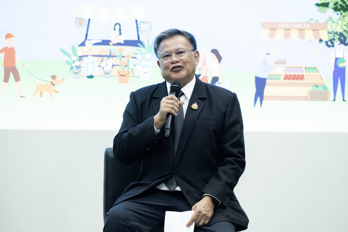 ด้าน ดร.ดำรงค์ ศรีพระราม อธิการบดีมหาวิทยาลัยเกษตรศาสตร์ กล่าวเสริมถึงบทบาทในฐานะผู้ดูแล “ต้นน้ำ” ว่า มหาวิทยาลัยเกษตรศาสตร์พร้อมนำเสนอ Green Innovation หรือนวัตกรรมสีเขียว เพื่อเปลี่ยนภาพจำสู่ “เกษตรแม่นยำและเป็นมิตรต่อโลก” (Climate-Smart Agriculture) “เจตนารมณ์ของเราคือการนำองค์ความรู้เกษตรสมัยใหม่ มาเชื่อมต่อกับสุขภาวะ เพราะเราเชื่อว่า ‘อาหารเป็นยา’ และ ‘สิ่งแวดล้อมที่ดีคือวัคซีนที่ดีที่สุด’ โดยในงานจะมีการจัดแสดงนวัตกรรมอาหารแห่งอนาคต (Future Food) และเทคโนโลยีการปรับปรุงพันธุ์พืชรองรับการเปลี่ยนแปลงสภาพภูมิอากาศ เพื่อให้งานนี้เป็นต้นแบบของ Green Fair ที่ใส่ใจโลกอย่างยั่งยืน”