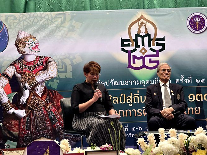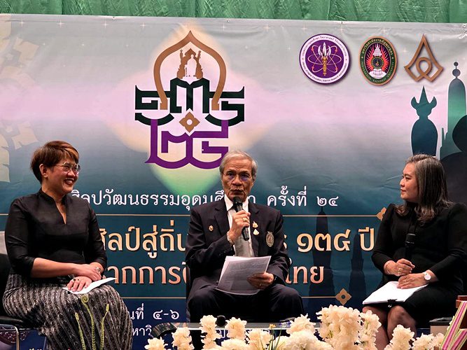 รองศาสตราจารย์ ดร.เปรื่อง กิจรัตน์ภร รักษาราชการแทนอธิการบดีมหาวิทยาลัยราชภัฏพระนคร กล่าวว่า การจัดงานศิลปวัฒนธรรมอุดมศึกษา ครั้งที่ 24 เป็นการตอกย้ำบทบาทของสถาบันอุดมศึกษาในการขับเคลื่อนศิลปวัฒนธรรมไทย โดยเฉพาะการเปิดโอกาสให้นิสิต นักศึกษา ได้มีส่วนร่วมในการอนุรักษ์ สืบสาน และต่อยอดมรดกทางวัฒนธรรมให้สอดคล้องกับบริบทสังคมร่วมสมัย การจัดงานครั้งนี้ จึงไม่เพียงเป็นการแสดงศิลปวัฒนธรรม แต่เป็นการสร้าง “พลังทางวัฒนธรรม” ที่เชื่อมโยงอดีต ปัจจุบัน และอนาคต เข้าด้วยกันอย่างกลมกลืน