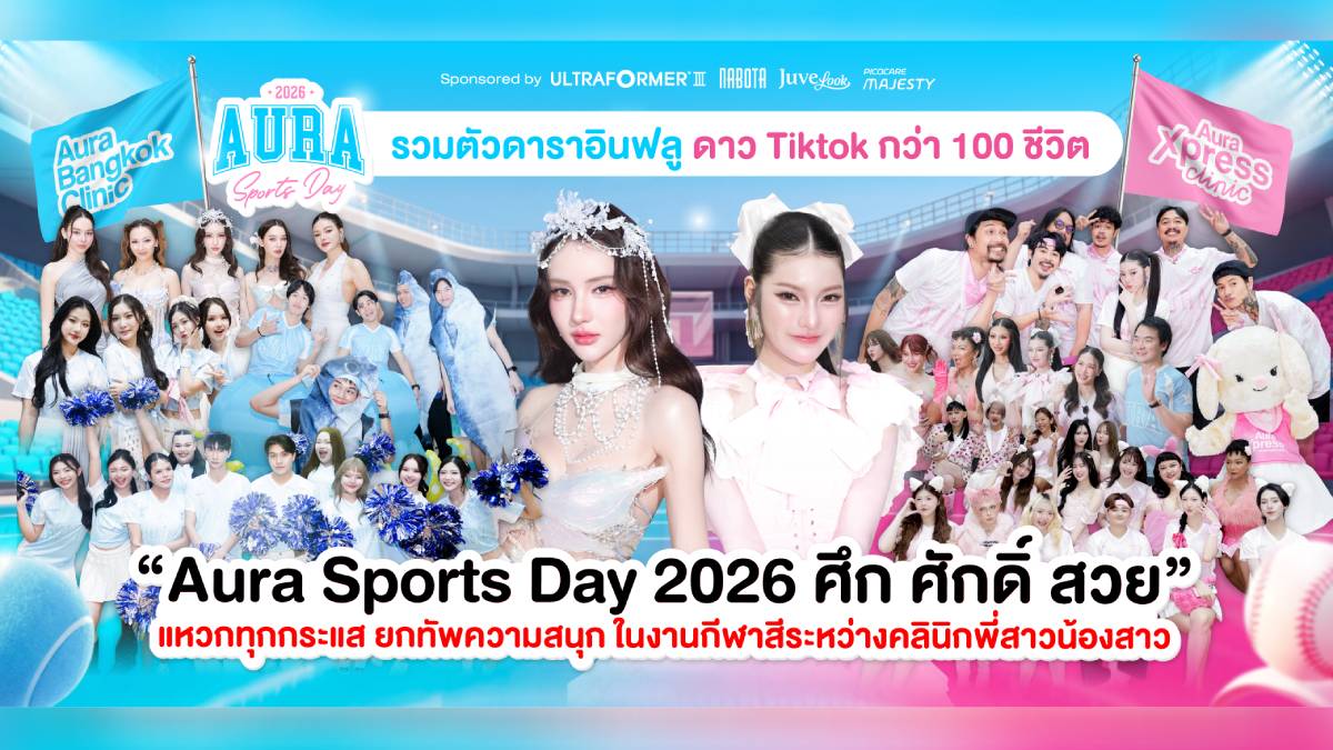 เปิดฉากสุดอลัง เขย่าความปังทุกแพลตฟอร์ม กับงานกีฬาสี Aura Sports Day 2026 ศึก ศักดิ์ สวย โดยสองคลินิกหัวแถวแห่งวงการความงาม Aura Bangkok Clinic และ Aura Xpress Clinic ขนความสนุก ทุ่มสุดตัวเพื่อขอบคุณลูกค้าและแฟน ๆ ยกทัพความมันส์จากทั้งวงการมาเกือบ 100 ชีวิต ทั้งดารา อินฟลูและยูทูปเบอร์ ดาวTiktok ระดับประเทศ แบ่งทีมมาประชันความสวยความหล่อกันเต็มที่ งานนี้เข้าฟรี! แถมมีของรางวัลกลับบ้านอีกเพียบ