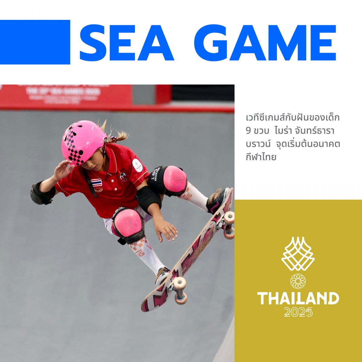 “หนูน้อยไมร่า” ไมร่า จันทร์ธารา บราวน์ นักสเก็ตบอร์ดวัยเพียง 9 ขวบ กลายเป็นนักกีฬาที่อายุน้อยที่สุดใน มหกรรมกีฬาซีเกมส์ 2025 ในนามตัวแทนทีมชาติไทย กับก้าวแรกบนเวทีระดับนานาชาติที่ยิ่งใหญ่เกินอายุ