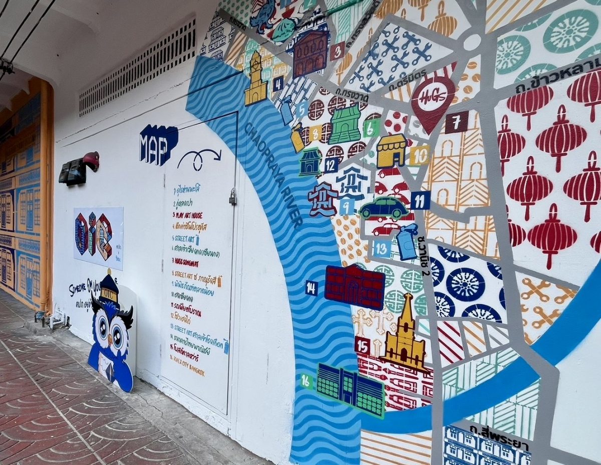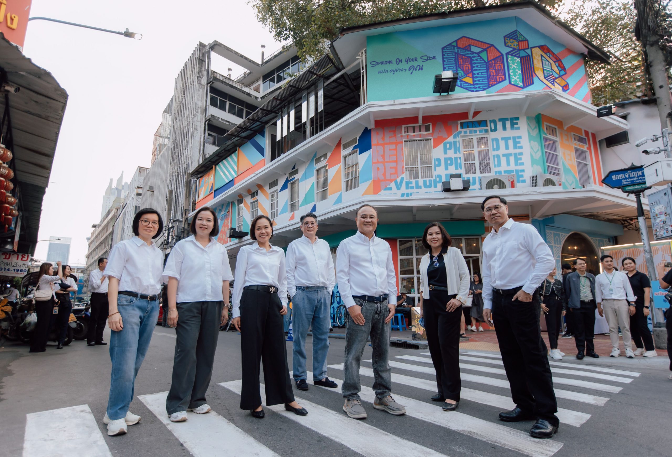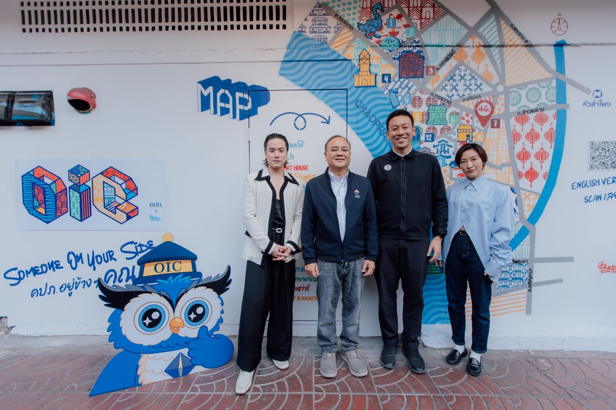 สำหรับไฮไลต์ภายในงาน พบกับการออกแบบกราฟิตี้บนอาคารทรงเก๋อย่าง HUGS Songwat โดยศิลปินชื่อดัง “ภิชญ ศรีระพงษ์” (BEERPITCH) นักออกแบบ Typography Art ผู้อยู่เบื้องหลังแบรนด์แฟชั่นชั้นนำ นำเสนอผลงานลวดลาย Geometric ที่ผสานเรื่องราวชุมชนเข้ากับโลโก้ OIC สัญลักษณ์สำนักงาน คปภ. สื่อถึงความปลอดภัย การปกป้อง และการลดความเสี่ยง ตอกย้ำแนวคิด “ศิลปะบนพื้นที่สาธารณะคุ้มครองอัตลักษณ์ชุมชน เช่นเดียวกับประกันภัยที่คุ้มครองผู้คนในทุกมิติชีวิต” ได้เป็นอย่างดี