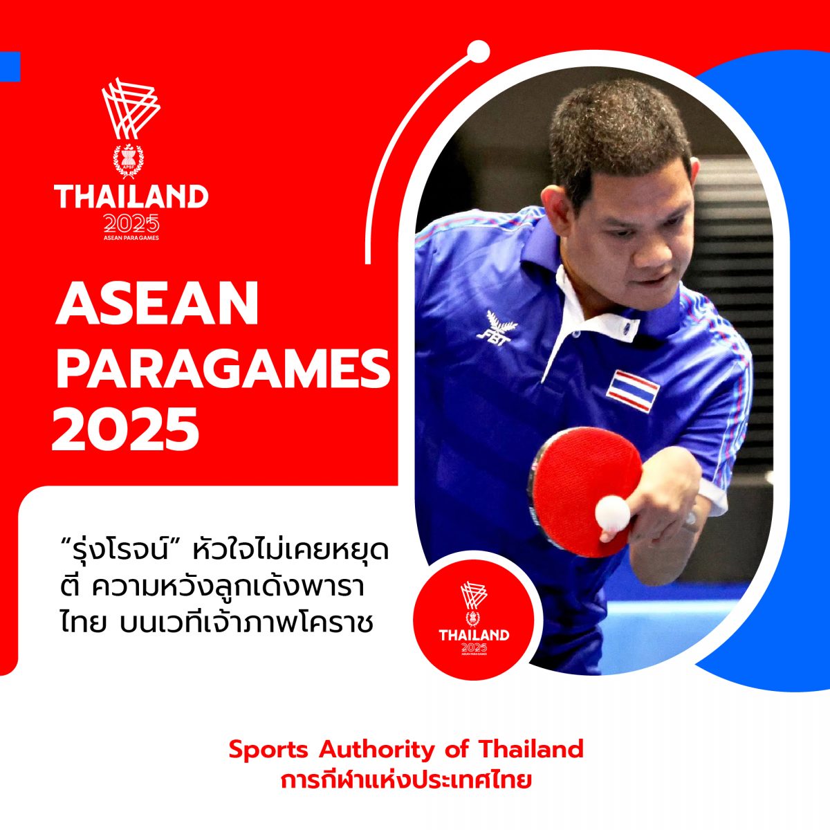 กีฬาอาเซียนพาราเกมส์ ครั้งที่ 13 ระหว่างวันที่ 20–26 มกราคม 2569 ที่กำลังจะเปิดฉากขึ้นในเร็วๆ นี้ มาพร้อมกับความคาดหวังของแฟนกีฬาชาวไทย ที่จับตาการลงสนามของ “รุ่ง” รุ่งโรจน์ ไทยนิยม นักกีฬาเทเบิลเทนนิสพาราทีมชาติไทย มืออันดับ 1 ของโลก และเจ้าของเหรียญทองพาราลิมปิกเกมส์ 2012