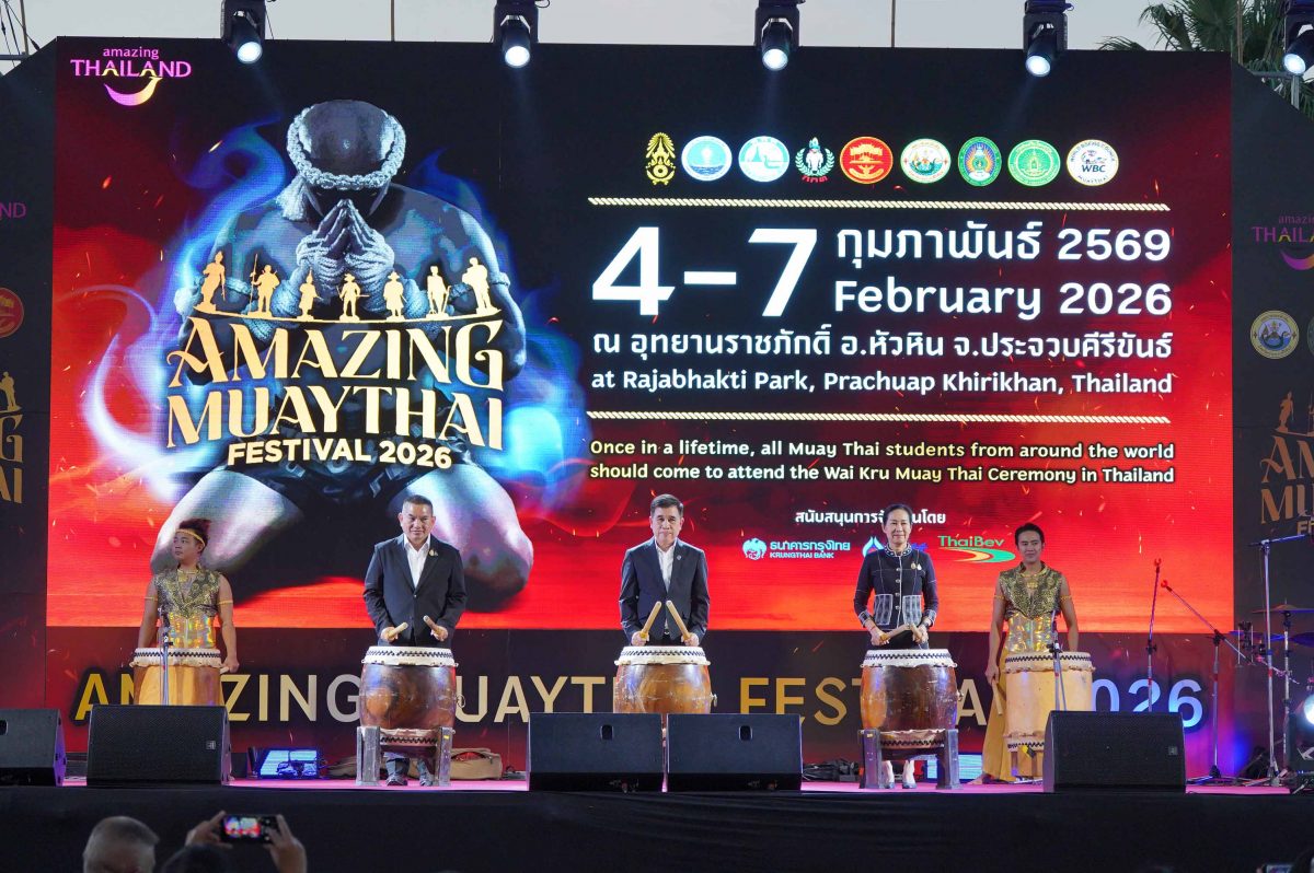 วันนี้ (4 กุมภาพันธ์ 2569) การท่องเที่ยวแห่งประเทศไทย (ททท.) ร่วมกับ จังหวัดประจวบคีรีขันธ์ กองทัพบก การกีฬาแห่งประเทศไทย กระทรวงวัฒนธรรม กรมประชาสัมพันธ์ มหาวิทยาลัยราชภัฏหมู่บ้านจอมบึง และ สภามวยโลกมวยไทย (WBC) เปิดงาน “Amazing MuayThai Festival 2026” โดยมี นายณัฐ ครุฑสูตร รองผู้ว่าการด้านสินค้าและธุรกิจท่องเที่ยว ททท. เป็นประธานในพิธี พร้อมด้วย นางอภิญญา เอี่ยมอำภา รองผู้ว่าราชการจังหวัดประจวบคีรีขันธ์ และ พลเอก จินตมัย ชีกว้าง ผู้แทนผู้บัญชาการทหารบก ให้เกียรติเข้าร่วมงาน ณ อุทยานราชภักดิ์ อำเภอหัวหิน จังหวัดประจวบคีรีขันธ์ โดยงานจัดขึ้นวันที่ 4 – 7 กุมภาพันธ์ 2569 เพื่อถ่ายทอดเรื่องราวของมวยไทย สร้างแรงบันดาลใจให้แก่นักท่องเที่ยวคุณภาพที่ชื่นชอบกีฬามวยจากทั่วโลก พร้อมตอกย้ำภาพลักษณ์ประเทศไทยในฐานะจุดหมายปลายทางด้าน Sport Tourism ระดับนานาชาติ