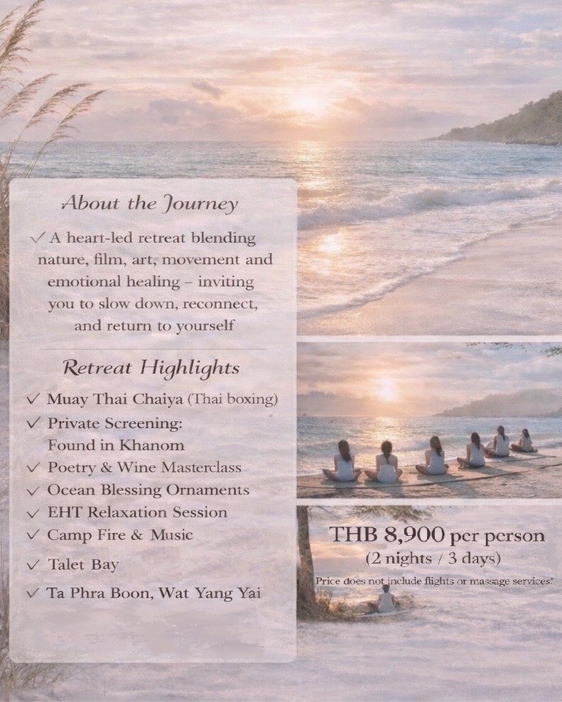Relax & Retreat at Tycoon’s Place จึงไม่ใช่เพียงกิจกรรมพักผ่อน แต่เป็นพื้นที่แห่งการฟัง การรู้สึก และการเดินทางภายใน ที่ต่อยอดจากภาพยนตร์สู่ประสบการณ์จริง ให้ผู้เข้าร่วมได้สัมผัส “ขนอม” ผ่านหัวใจของศิลปิน