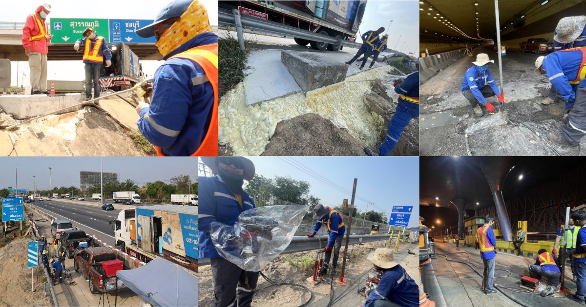 “เราเลือกใช้วัสดุที่ผ่านมาตรฐานจริงเท่านั้น เพราะงานโครงสร้างพื้นฐานต้องการความมั่นคงและความปลอดภัยสูงสุด เทคโนโลยี Polyurethane Injection ของเราจึงได้รับการยอมรับและใช้งานอย่างแพร่หลายในงานวิศวกรรมระดับอุตสาหกรรม ทั้งในโรงงาน โกดัง ถนน และคอสะพาน”