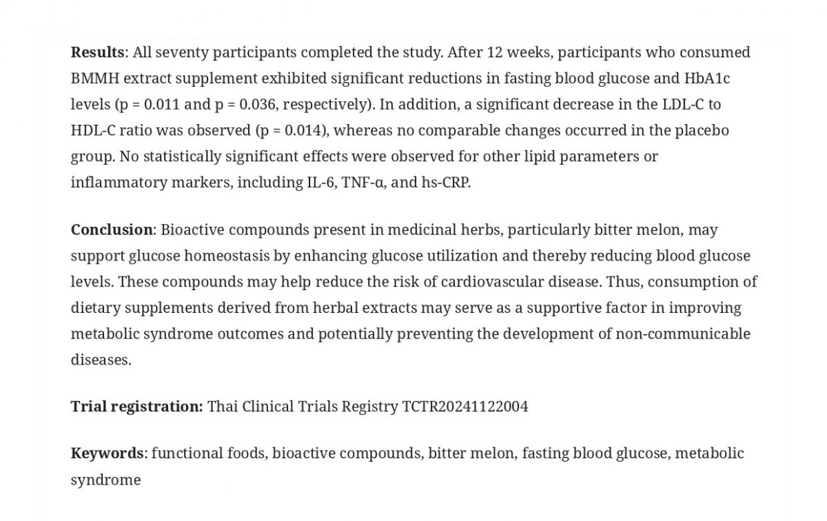 ผลการวิจัยสะท้อนให้เห็นแนวโน้มเชิงบวกของตัวชี้วัดด้านเมตาบอลิก โดยเฉพาะ ระดับน้ำตาลในเลือดขณะอดอาหาร และระดับน้ำตาลสะสม (HbA1c) ที่มีแนวโน้มลดลงอย่างมีนัยสำคัญ รวมถึง อัตราส่วนของไขมันในเลือดชนิด LDL-C ต่อ HDL-C ที่ลดลง ซึ่งเป็นตัวชี้วัดสำคัญด้านการลดความเสี่ยงของการเกิดโรคทางหัวใจและหลอดเลือดในอนาคต