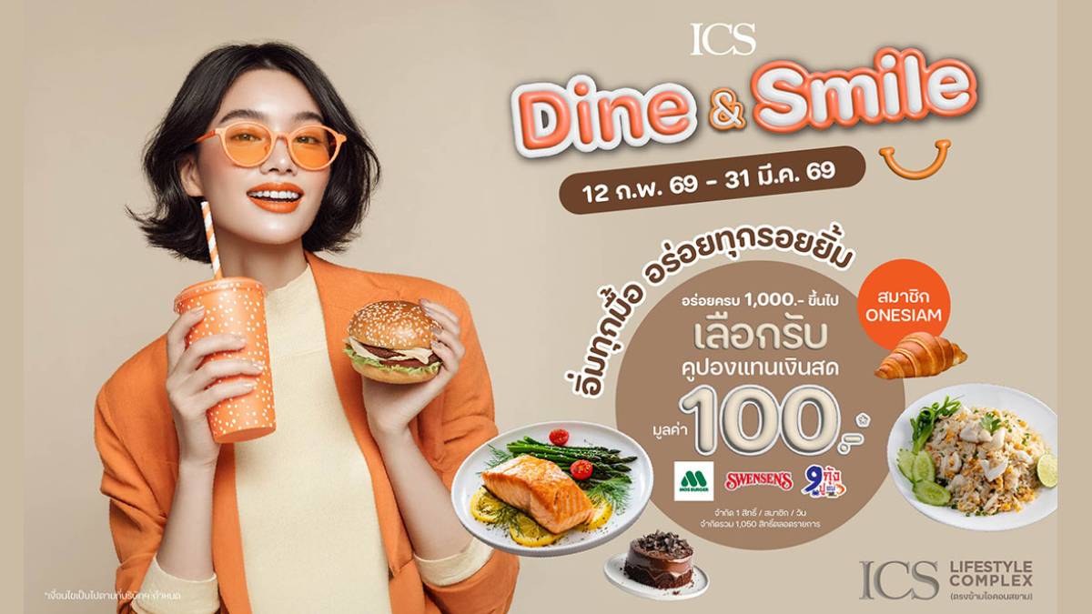 ICS lifestyle Complex เดินหน้าสร้างประสบการณ์ความสุขให้กับนักชิม เปิดตัวแคมเปญพิเศษ “ICS DINE & SMILE อิ่มทุกมื้อ อร่อยทุกรอยยิ้ม” มอบสิทธิประโยชน์สุดคุ้มสำหรับสมาชิก ONESIAM ที่มาใช้บริการร้านอาหารและเครื่องดื่มที่ไอซีเอส ไลฟ์สไตล์ คอมเพล็กซ์ ตรงข้ามไอคอนสยาม แลกรับคูปองเงินสดจากร้านค้าและร้านไอศครีมชื่อดัง ตั้งแต่วันนี้ ถึง 31 มีนาคม 2569