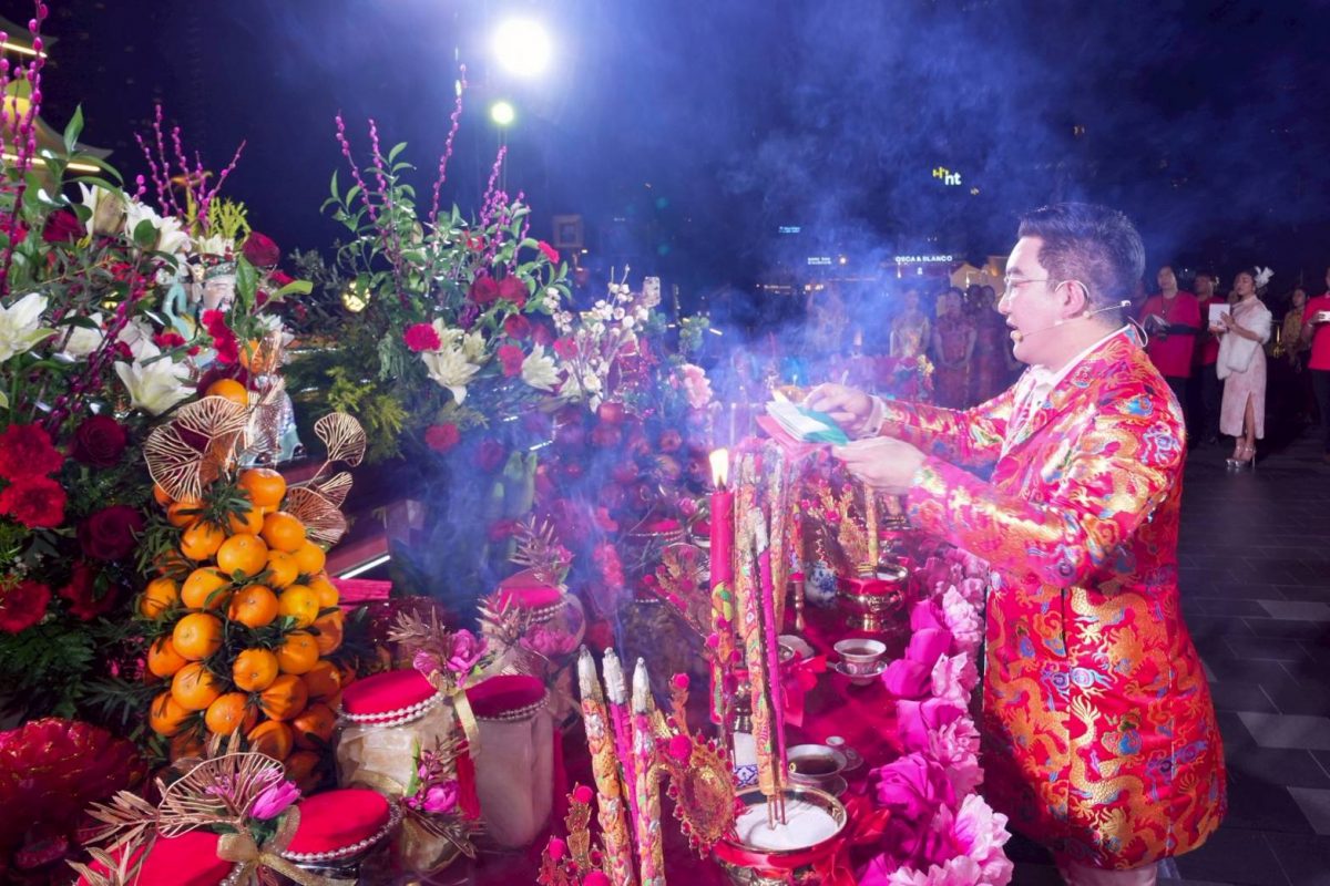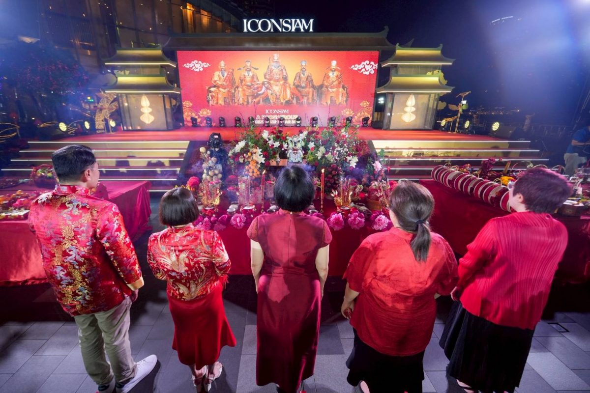 ความพิเศษของพิธีในครั้งนี้ ไอคอนสยาม ได้รับเกียรติจาก อาจารย์คฑา ชินบัญชร มาเป็นผู้นำพิธีและให้ความรู้เกี่ยวกับองค์เทพเจ้าสำคัญ 3 องค์ ได้แก่ เทพเจ้าไฉ่ซิงเอี๊ย (เทพแห่งโชคลาภ), เทพเจ้าฮี่ซิงเอี๊ย (เทพเจ้ารื่นเริงยินดี) และเทพเจ้ากุ่ยซิงเอี๊ย (เทพเจ้ายศศักดิ์กัลยาณมิตร) ซึ่งนอกจากความศักดิ์สิทธิ์แล้ว ผู้เข้าร่วมงานยังได้รับประสบการณ์ที่แตกต่างจากการเรียนรู้วิธีการไหว้ที่ถูกต้องตามประเพณีดั้งเดิม ท่ามกลางบรรยากาศริมแม่น้ำเจ้าพระยาบน “ทำเลท้องมังกร” อันเป็นมงคล โดย ไอคอนสยาม ได้จัดเตรียมพื้นที่และอำนวยความสะดวกในทุกขั้นตอน เพื่อให้ทุกคนสามารถเข้าร่วมประกอบพิธีสำคัญเพื่อเริ่มต้นปีใหม่อย่างรุ่งโรจน์และเปี่ยมด้วยศรัทธา