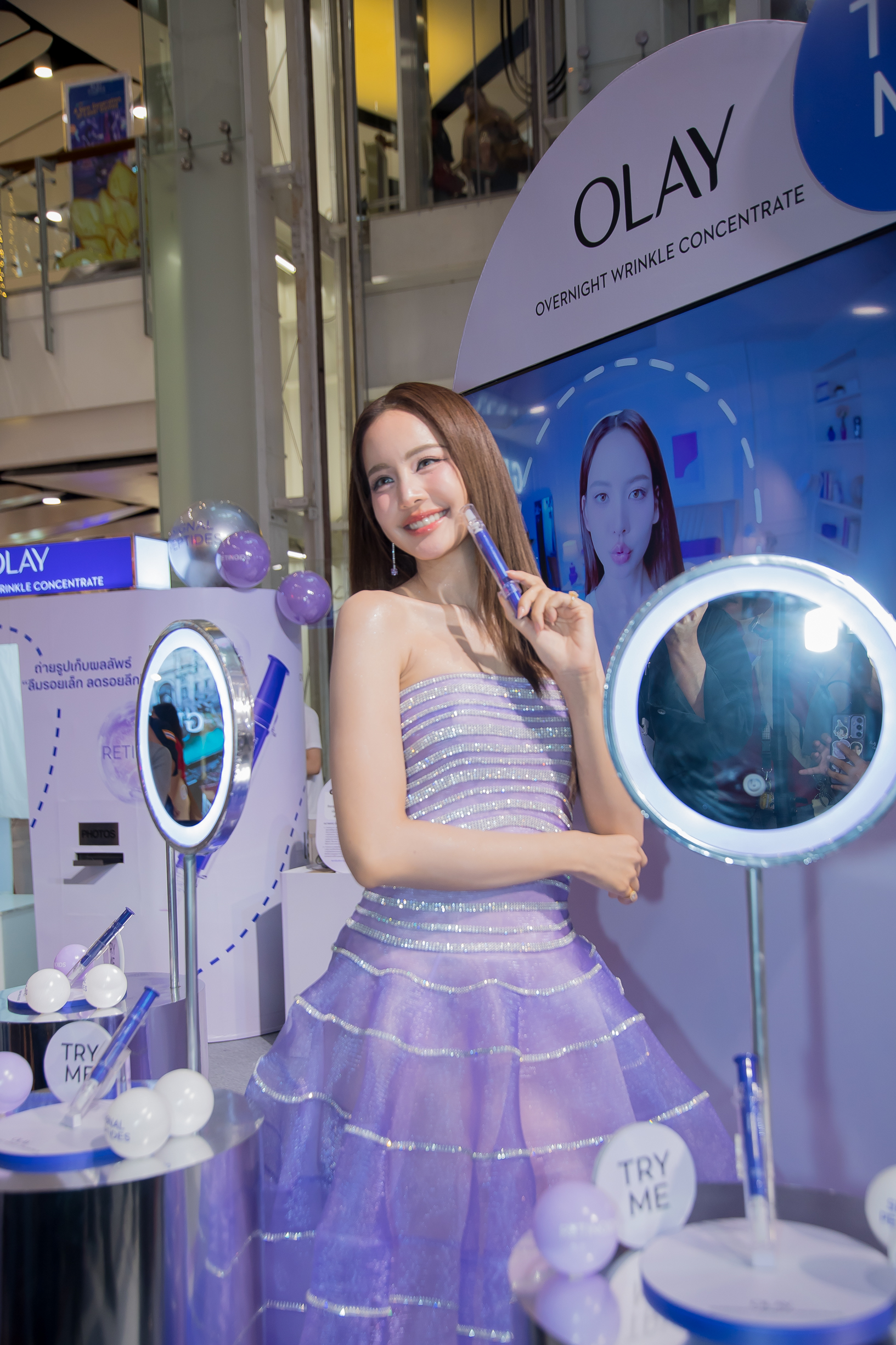 Olay (โอเลย์) แบรนด์ผลิตภัณฑ์ดูแลผิวชั้นนำจากสหรัฐอเมริกา จัดอีเวนต์สุดยิ่งใหญ่ “เอา Olay มาวง Wrinkle Check & Correct Event” เปิดตัวนวัตกรรมล่าสุด OLAY OVERNIGHT WRINKLE CONCENTRATE หรือ “โอเลย์ ปากกาม่วงเก็บรอยลึก” นวัตกรรมดูแลริ้วรอยแบบตรงจุดที่ออกแบบมาเพื่อตอบโจทย์ไลฟ์สไตล์คนยุคใหม่ โดยมี “โบว์ – เมลดา สุศรี” Olay Thailand Brand Ambassador ร่วมงานพร้อมพาโชว์ร้องเพลงสุดเอ็กซ์คลูซีฟ “เอา Olay มาวง” เป็นครั้งแรก ปิดท้ายด้วยกิจกรรม Fan Meets กับ หยิ่น-วอร์ ให้แฟนโอเลย์ได้ฟินอย่างใกล้ชิด ณ Central Court ศูนย์การค้าเซ็นทรัลเวิลด์