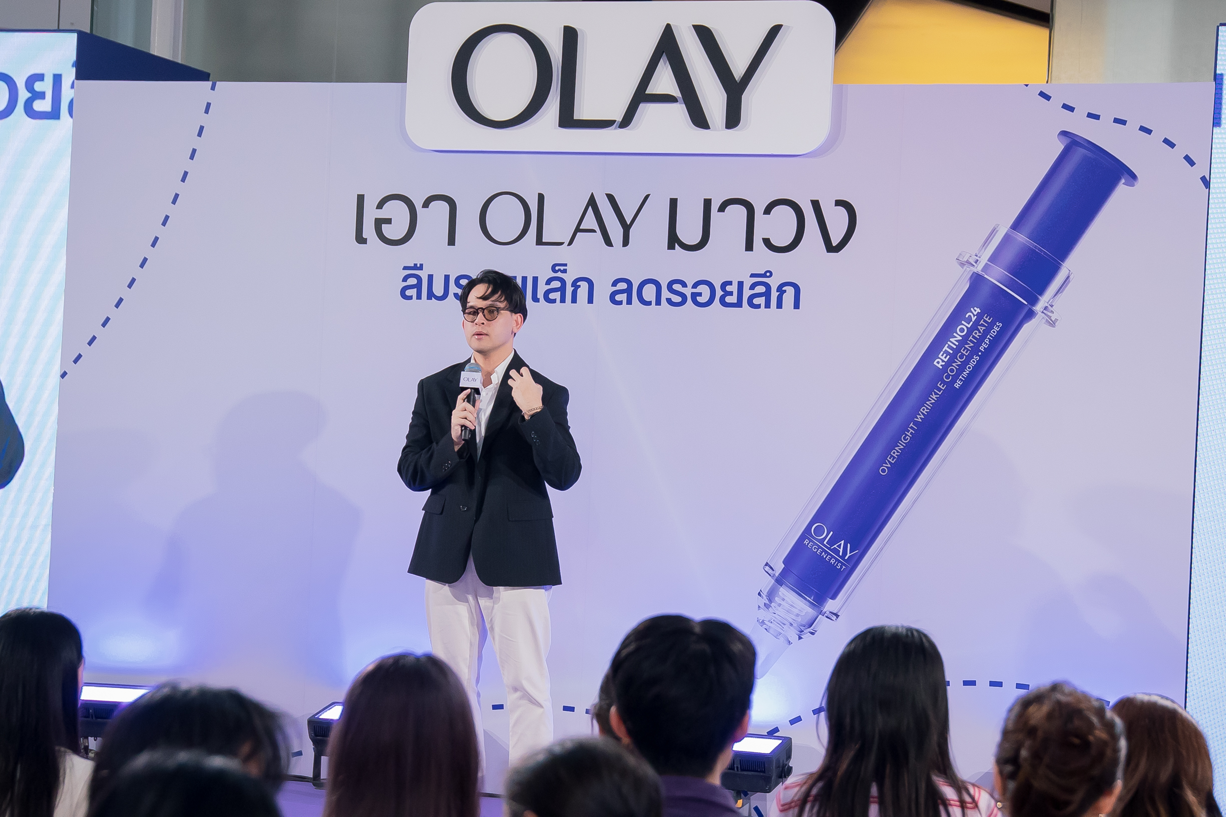 ภายในงานรายล้อมด้วยกิจกรรมหลากหลายจากโอเลย์ ไม่ว่าจะเป็น Wrinkle Check การทดลองผลิตภัณฑ์จริง การถ่ายภาพกับ Giant Product และ Photo Booth พร้อมพบกับ OLAY OVERNIGHT WRINKLE CONCENTRATE หรือ Olay ปากกาม่วงเก็บรอยลึก นวัตกรรมใหม่ล่าสุดจากโอเลย์ เซรั่มเรตินอลแต้มริ้วรอยเฉพาะจุดที่มาในรูปแบบปากกา พกพาง่าย สามารถใช้แต้มริ้วรอยที่เข้าถึงได้ยากอย่างแม่นยำ ทั้งบริเวณหน้าผาก ใต้ตา ตีนกา และร่องแก้ม อุดมด้วย Retinol 0.35% ช่วยผลัดเซลล์ผิวชั้นบน และ Signal peptides ช่วยเติมเต็มให้ผิวแลดูเด้งอิ่มฟูขึ้นจากภายใน การันตีผลลัพธ์จากผู้ใช้จริง 97% คอนเฟิร์มว่าหลังใช้ผลิตภัณฑ์อย่างต่อเนื่อง 28 วัน ริ้วรอยลึกสะสมแลดูลดเลือนอย่างเห็นได้ชัด* จนกลายเป็นจุดรวมตัวของแฟนโอเลย์และบิวตี้เลิฟเวอร์ทุกคนได้สัมผัสบรรยากาศที่ทั้งสนุก เข้าถึงง่าย และสะท้อนภาพลักษณ์ของการดูแลผิวที่ไม่จำเป็นต้องจริงจังจนเกินไป โดยได้รับเกียรติจาก คุณกฤษณพงศ์ สงวนปรางค์ Olay Brand Manager ร่วมต้อนรับสื่อมวลชนและแขกผู้มีเกียรติ พร้อมเผยวิสัยทัศน์ในการพัฒนานวัตกรรมดูแลริ้วรอยของ Olay ที่มุ่งตอบโจทย์การดูแลผิวอย่างตรงจุด และเข้ากับไลฟ์สไตล์ของผู้บริโภคยุคใหม่