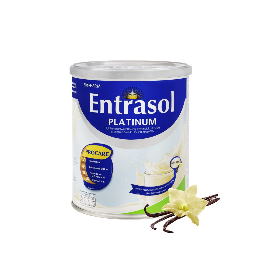 Entrasol Platinum เครื่องดื่มโปรตีน ทานง่าย เป็นตัวเลือกอาหารเสริมผู้สูงอายุที่เราอยากแนะนำ เหมาะสำหรับผู้ที่ต้องการอาหารเสริมบำรุงสมองผู้สูงอายุและอาหารเสริมบำรุงร่างกายผู้สูงอายุแบบไม่ยุ่งยาก แต่ยังอุดมไปด้วยโปรตีนที่มากกว่านมทั่วไป เพราะอุดมไปด้วยโปรตีนสูงถึง 12.5 กรัม และยังมีวิตามินและแร่ธาตุที่จำเป็นต่อร่างกาย