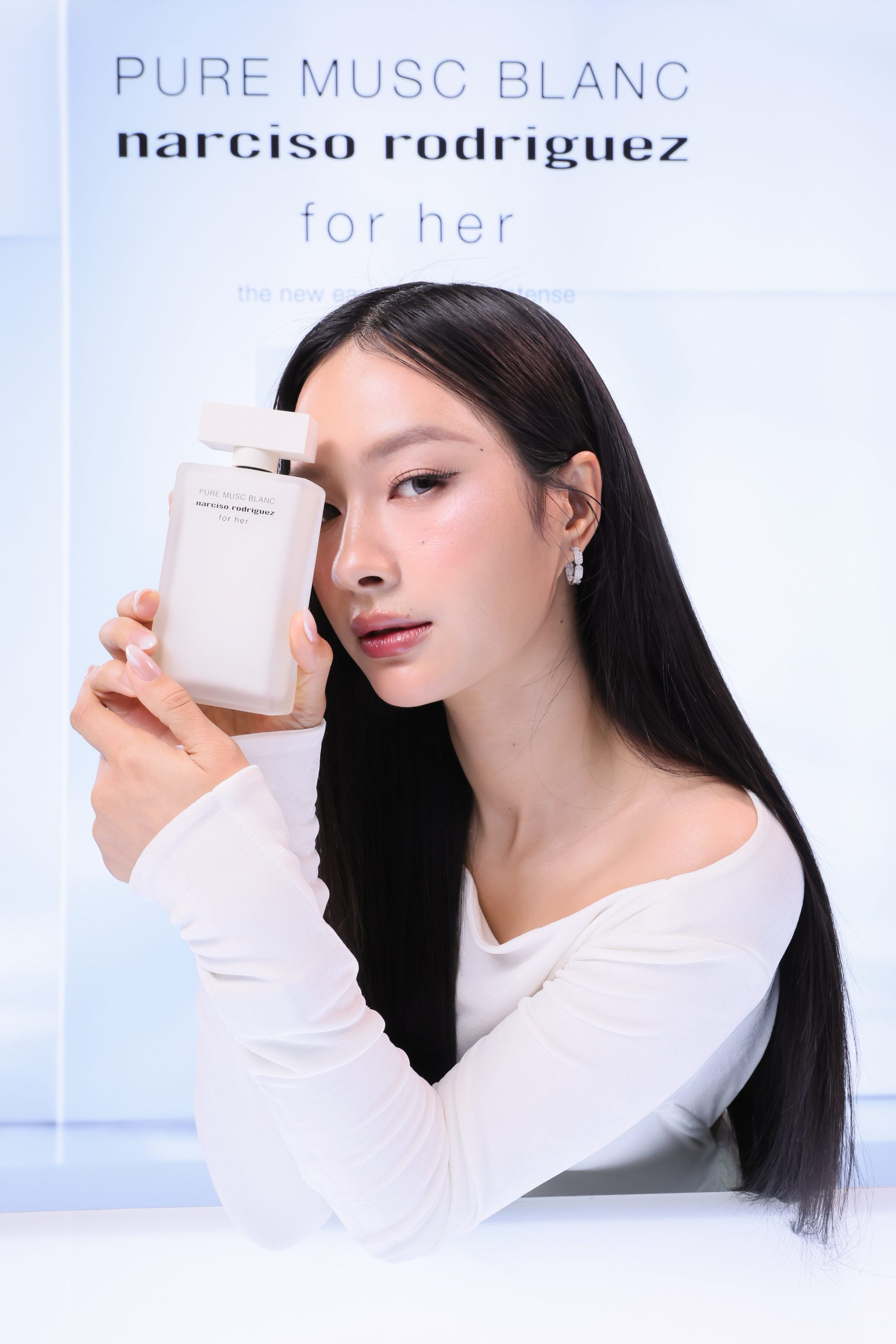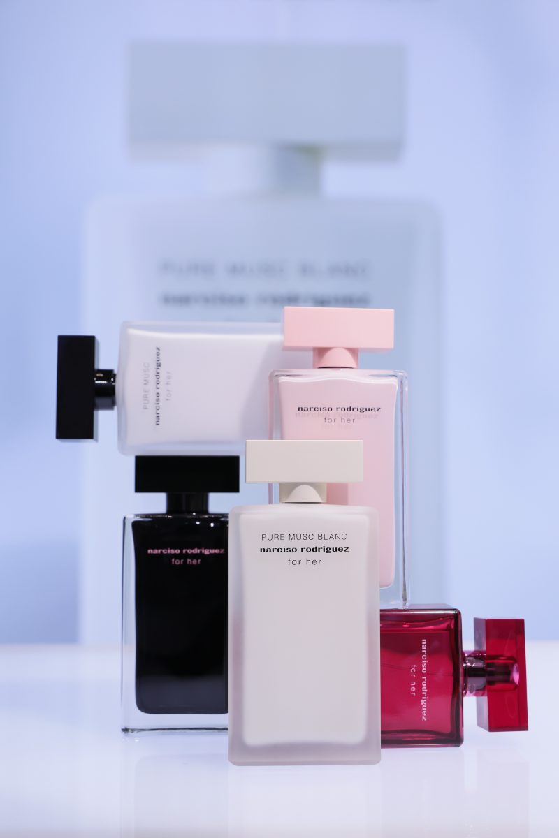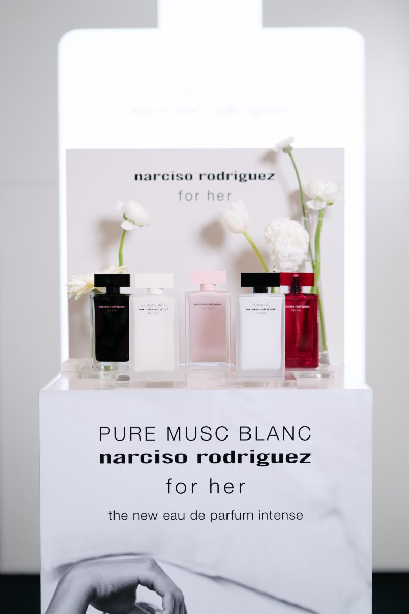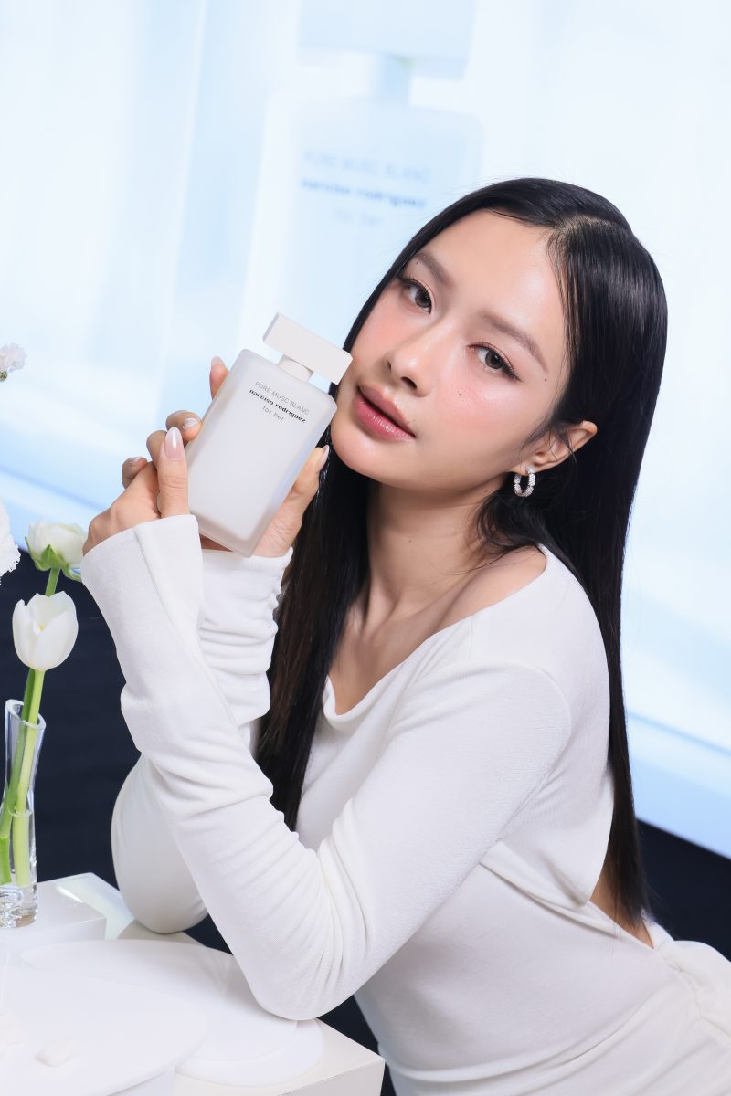 ภายในงานอบอวลด้วยกลิ่นหอมบทใหม่จาก narciso rodriguez for her PURE MUSC BLANC eau de parfum intense ผลงานการรังสรรค์ของ Sonia Constant นักปรุงน้ำหอมชื่อดังผู้อยู่เบื้องหลังความหอมระดับไอคอนิกมากมายในคอลเลกชัน for her ด้วยแรงบันดาลใจในการสร้างสรรค์น้ำหอมที่เปี่ยมเสน่ห์ราวกับประกายแสงโอบล้อมผิว มอบความรู้สึกโปร่งสบาย สะอาด และเย้ายวนในเวลาเดียวกัน โดยถ่ายทอดเอกลักษณ์ heart of musc อันเป็นหัวใจของน้ำหอมจาก narciso rodriguez ผ่านโครงสร้างกลิ่นที่เปิดมิติความหอมด้วย Top Note จาก aldehydes และ pink peppercorn ให้ความสดชื่นโปร่งเบาที่บริสุทธิ์ ก่อนจะเผย Heart Note จาก jasmine และ white floral accords ที่มอบออร่าความสว่างไสวและความเป็นผู้หญิงอย่างลุ่มลึก ปิดท้ายด้วย Base Note จากโทน ambery, woody และ vanilla ที่ให้ความอบอุ่นนุ่มลึก สร้างเอกลักษณ์กลิ่นแนว modern floral chypre ที่โดดเด่นและร่วมสมัย นอกจากนี้ยังสามารถเลเยอร์ร่วมกับกลิ่นดั้งเดิมอย่าง for her PURE MUSC eau de parfum ผสานเข้ากับ PURE MUSC BLANC เพื่อสร้างซิกเนเจอร์กลิ่นที่เป็นเอกลักษณ์เฉพาะตัว พร้อมยกระดับความรู้สึกสัมผัสต่อผิว ครีมมี่ สะอาด และเพิ่มความเข้มข้นใหม่ให้ความหอมของ white flower อย่างละเมียดละไมในทุกอณู
