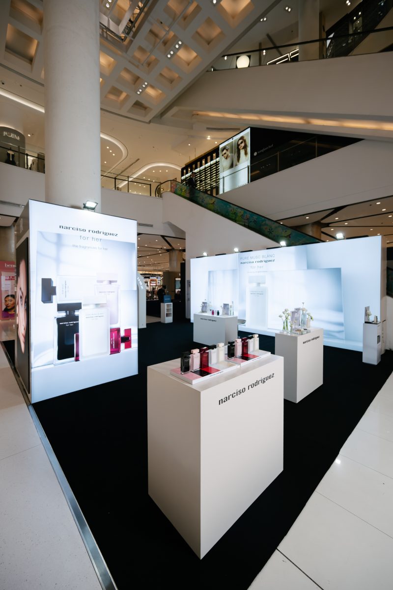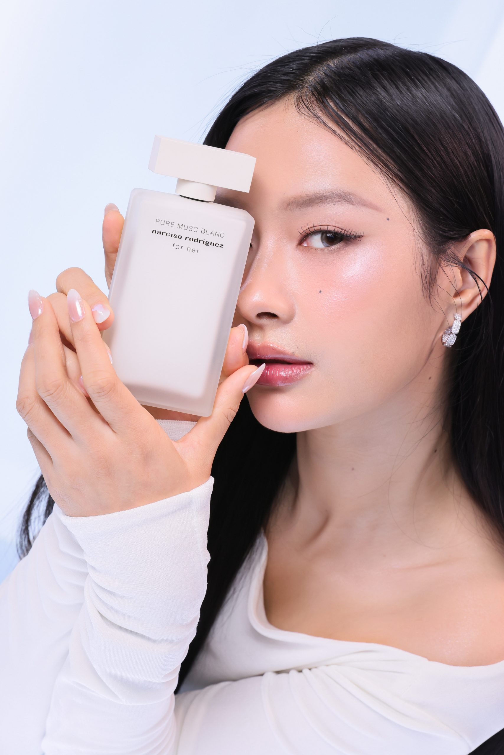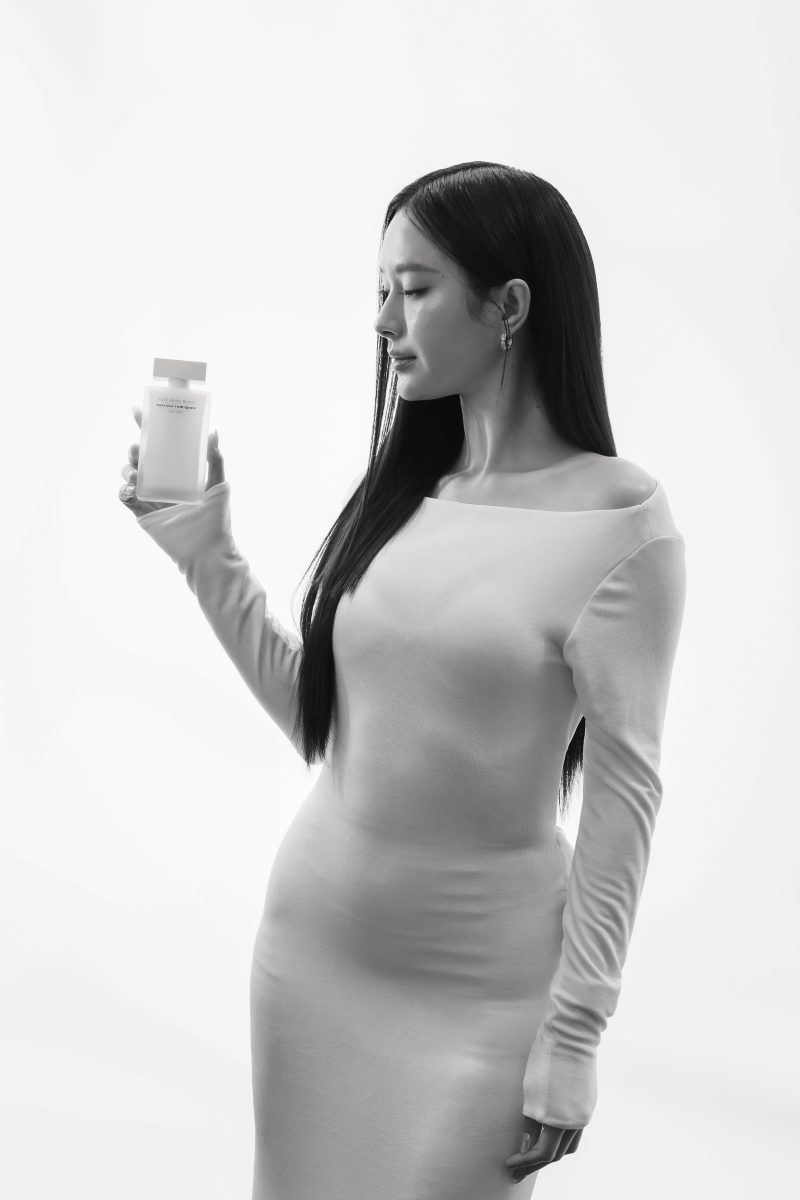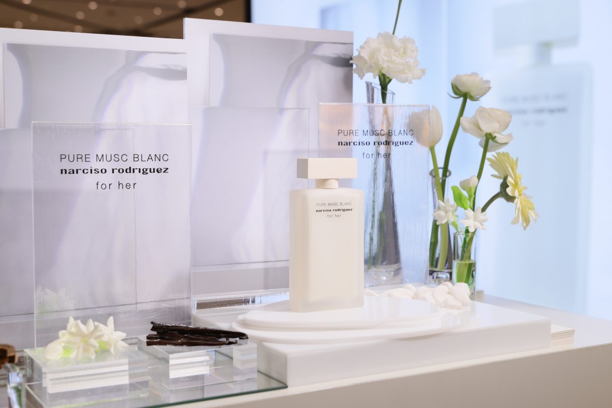 ภายในงานอบอวลด้วยกลิ่นหอมบทใหม่จาก narciso rodriguez for her PURE MUSC BLANC eau de parfum intense ผลงานการรังสรรค์ของ Sonia Constant นักปรุงน้ำหอมชื่อดังผู้อยู่เบื้องหลังความหอมระดับไอคอนิกมากมายในคอลเลกชัน for her ด้วยแรงบันดาลใจในการสร้างสรรค์น้ำหอมที่เปี่ยมเสน่ห์ราวกับประกายแสงโอบล้อมผิว มอบความรู้สึกโปร่งสบาย สะอาด และเย้ายวนในเวลาเดียวกัน โดยถ่ายทอดเอกลักษณ์ heart of musc อันเป็นหัวใจของน้ำหอมจาก narciso rodriguez ผ่านโครงสร้างกลิ่นที่เปิดมิติความหอมด้วย Top Note จาก aldehydes และ pink peppercorn ให้ความสดชื่นโปร่งเบาที่บริสุทธิ์ ก่อนจะเผย Heart Note จาก jasmine และ white floral accords ที่มอบออร่าความสว่างไสวและความเป็นผู้หญิงอย่างลุ่มลึก ปิดท้ายด้วย Base Note จากโทน ambery, woody และ vanilla ที่ให้ความอบอุ่นนุ่มลึก สร้างเอกลักษณ์กลิ่นแนว modern floral chypre ที่โดดเด่นและร่วมสมัย นอกจากนี้ยังสามารถเลเยอร์ร่วมกับกลิ่นดั้งเดิมอย่าง for her PURE MUSC eau de parfum ผสานเข้ากับ PURE MUSC BLANC เพื่อสร้างซิกเนเจอร์กลิ่นที่เป็นเอกลักษณ์เฉพาะตัว พร้อมยกระดับความรู้สึกสัมผัสต่อผิว ครีมมี่ สะอาด และเพิ่มความเข้มข้นใหม่ให้ความหอมของ white flower อย่างละเมียดละไมในทุกอณู