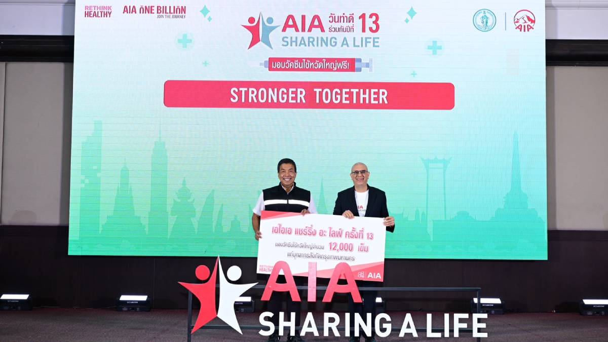 กรุงเทพฯ 27 มีนาคม 2569 – เอไอเอ ประเทศไทย สานต่อโครงการเพื่อตอบแทนสังคมประจำปี กับการจัดกิจกรรม เอไอเอ แชร์ริ่ง อะ ไลฟ์ (AIA Sharing A Life) หรือวันทำดีร่วมกันของชาวเอไอเอ ปีที่ 13 โดยปีนี้จัดขึ้นภายใต้แนวคิด “Stronger Together” ด้วยการมอบวัคซีนไข้หวัดใหญ่รวม 15,000 เข็มเพื่อเสริมเกราะป้องกันความรุนแรงของโรคให้แก่คนไทยทั่วประเทศ พร้อมจับมือกับ กรุงเทพมหานคร ต่อเนื่องเป็นปีที่ 2 เพื่อมอบวัคซีนไข้หวัดใหญ่ให้แก่เจ้าหน้าที่เก็บขยะและกวาดถนน ของกรุงเทพมหานครทั้ง 50 เขต รวมทั้งยังขยายการสนับสนุนวัคซีนไปสู่เจ้าหน้าที่ขุดเจาะ สังกัดกรมทรัพยากรน้ำบาดาล ซึ่งเจ้าหน้าที่เหล่านี้นับเป็นกลุ่มเสี่ยงที่ต้องออกมาทำงานในพื้นที่ชุมชนและมีโอกาสสูงที่จะได้รับเชื้อ ซึ่งในงานแถลงข่าว นายชัชชาติ สิทธิพันธุ์ ผู้ว่าราชการกรุงเทพมหานคร ได้ให้เกียรติเป็นประธานในพิธีเปิดกิจกรรม เอไอเอ แชร์ริ่ง อะ ไลฟ์ ครั้งที่ 13 (AIA Sharing A Life 13) ร่วมด้วยพันธมิตรใจดีที่ได้มาร่วมบริการน้ำดื่มและของว่างให้แก่ประชาชนที่มารับบริการฉีดวัคซีน ณ ศาลาว่าการกรุงเทพมหานคร (ดินแดง)